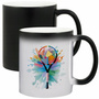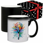 Kolor: czarny (na zimno), po zalaniu gorącym napojem pojawia się grafika, po ostygnięciu grafika znika kubek wraca do koloru czarnego.