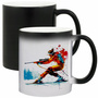 Kolor: czarny (na zimno), po zalaniu gorącym napojem pojawia się grafika, po ostygnięciu grafika znika kubek wraca do koloru czarnego.