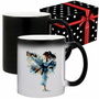 Kolor: czarny (na zimno), po zalaniu gorącym napojem pojawia się grafika, po ostygnięciu grafika znika kubek wraca do koloru czarnego.