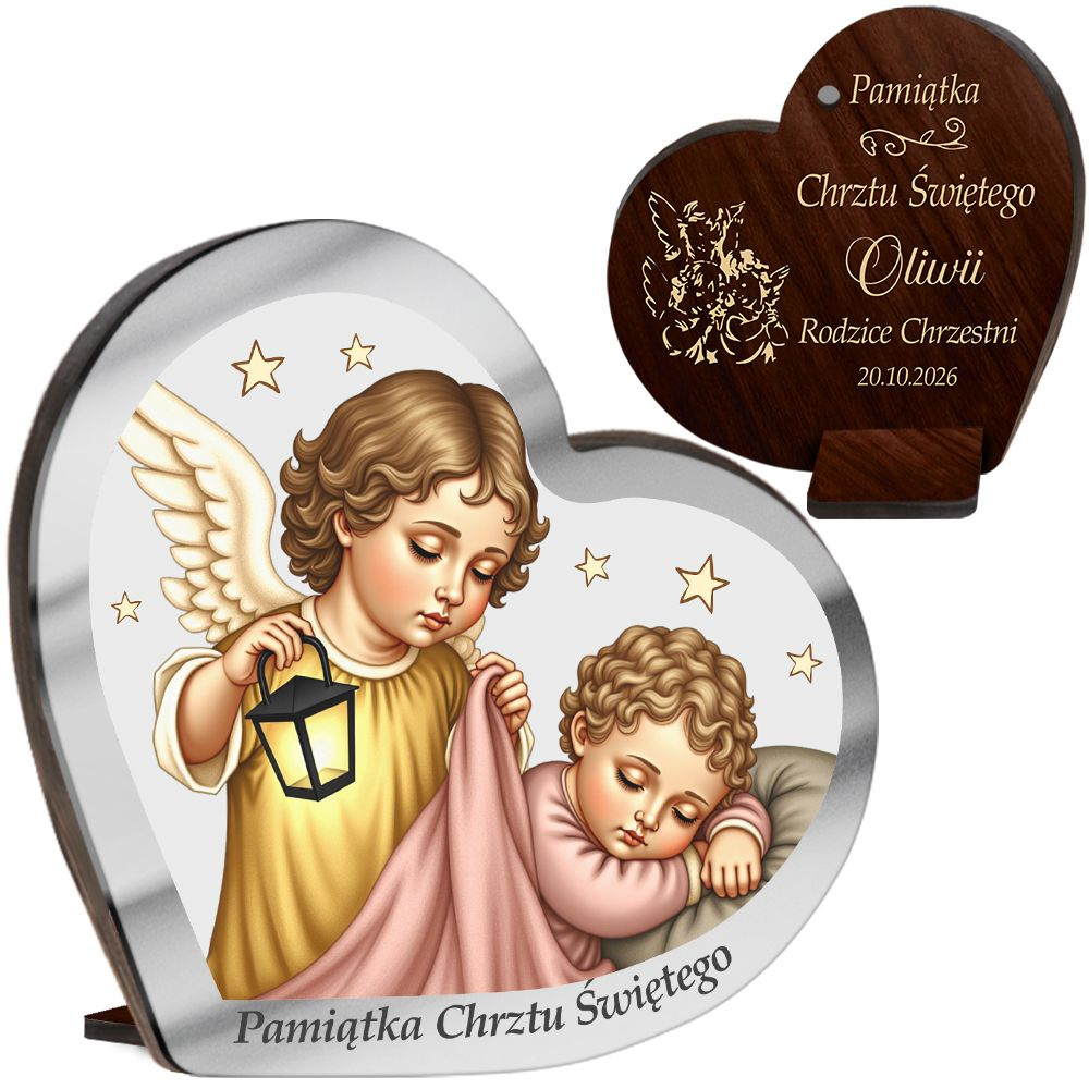 Wyjątkowa pamiątka Chrztu Świętego – obrazek w kształcie serca z Aniołkiem