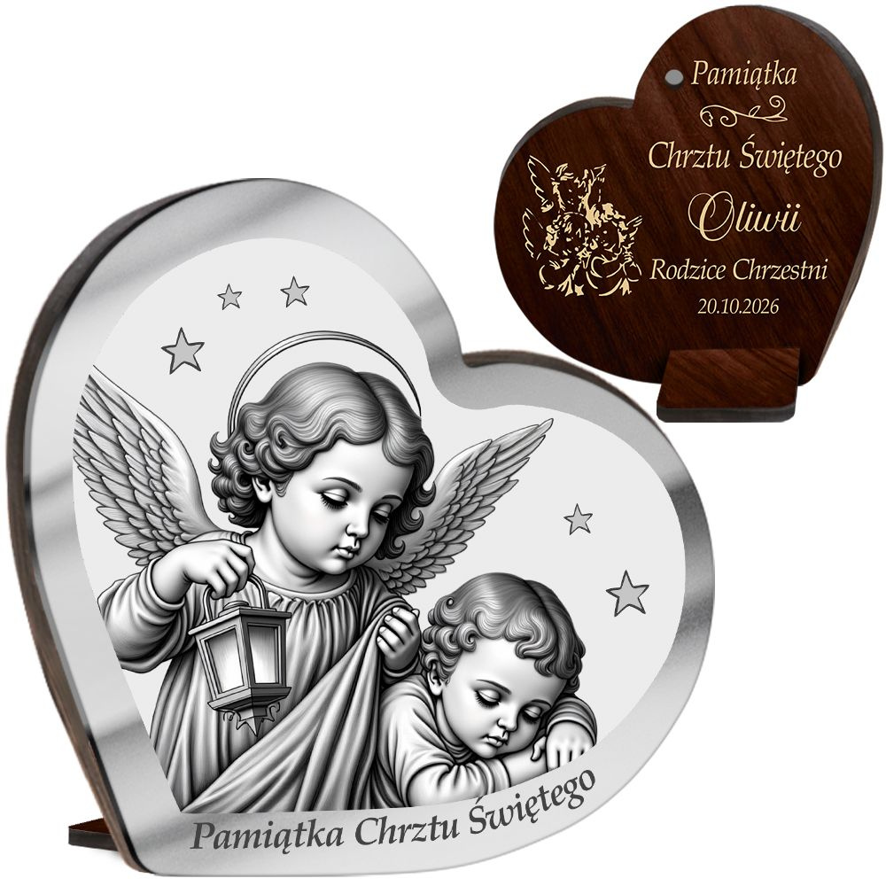 Wyjątkowa pamiątka Chrztu Świętego – obrazek w kształcie serca z Aniołkiem