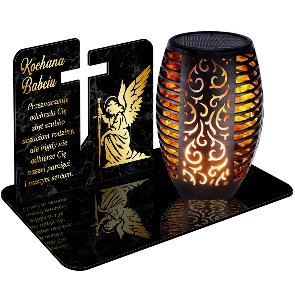 ZNICZ SOLARNY LED WIECZNY PODSTAWKA NA CMENTARZ GRÓB Aniołek EFEKT PŁOMIENIA DLA BABCI