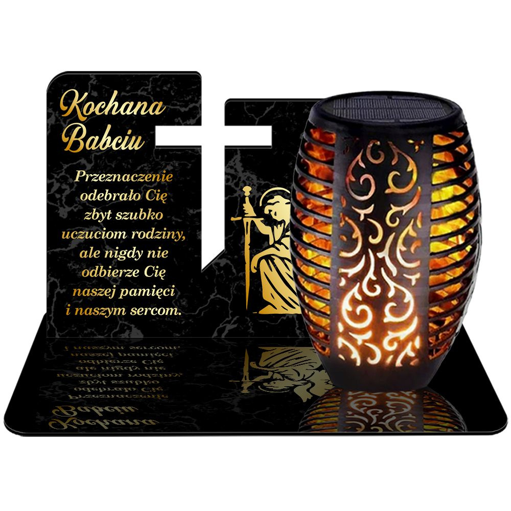 ZNICZ SOLARNY LED PREMIUM XL ze zdobieniem - wieczny znicz z wbudowanym czujnikiem zmierzchu i WKŁADEM Z EFEKTEM PŁOMIENIA