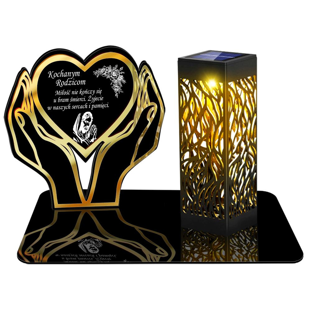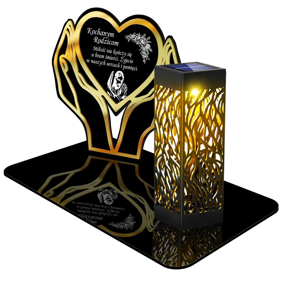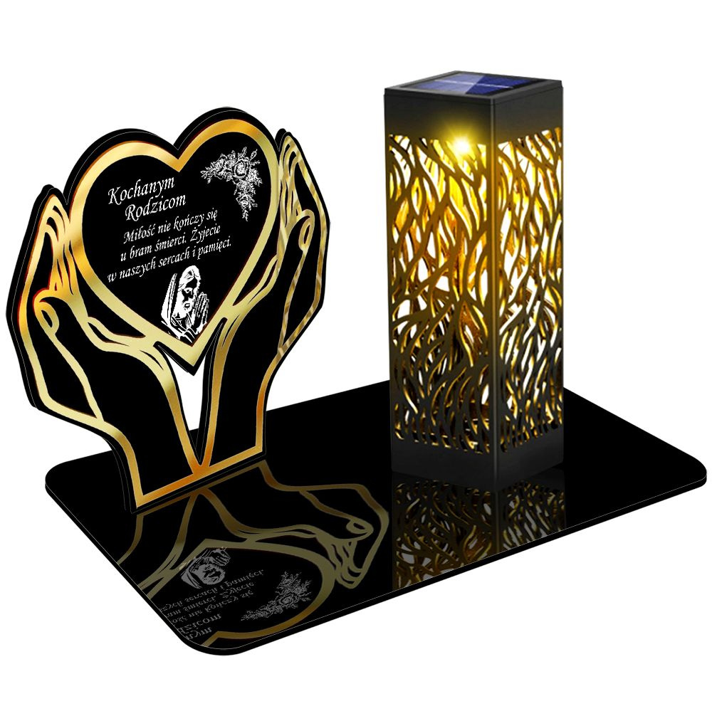 SOLARNY ZNICZ LED AŻUROWY PODSTAWKA STATUETKA NA CMENTARZ GRÓB DUŻA SERCE DLA RODZICÓW