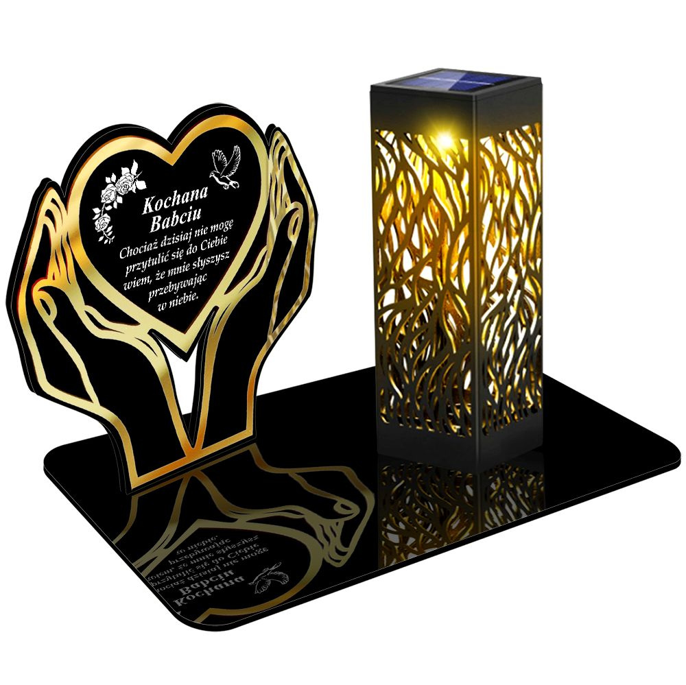 SOLARNY ZNICZ LED AŻUROWY PODSTAWKA STATUETKA NA CMENTARZ GRÓB DUŻA SERCE DLA BABCI