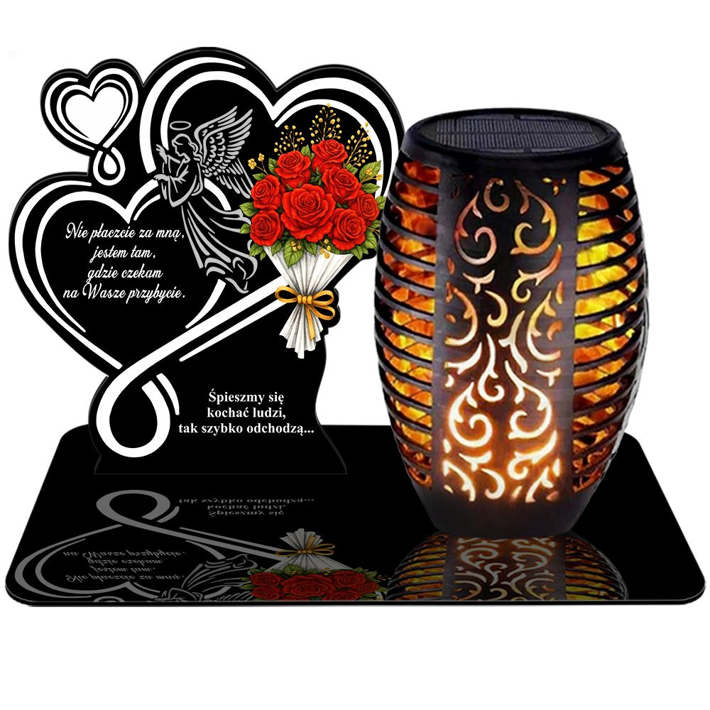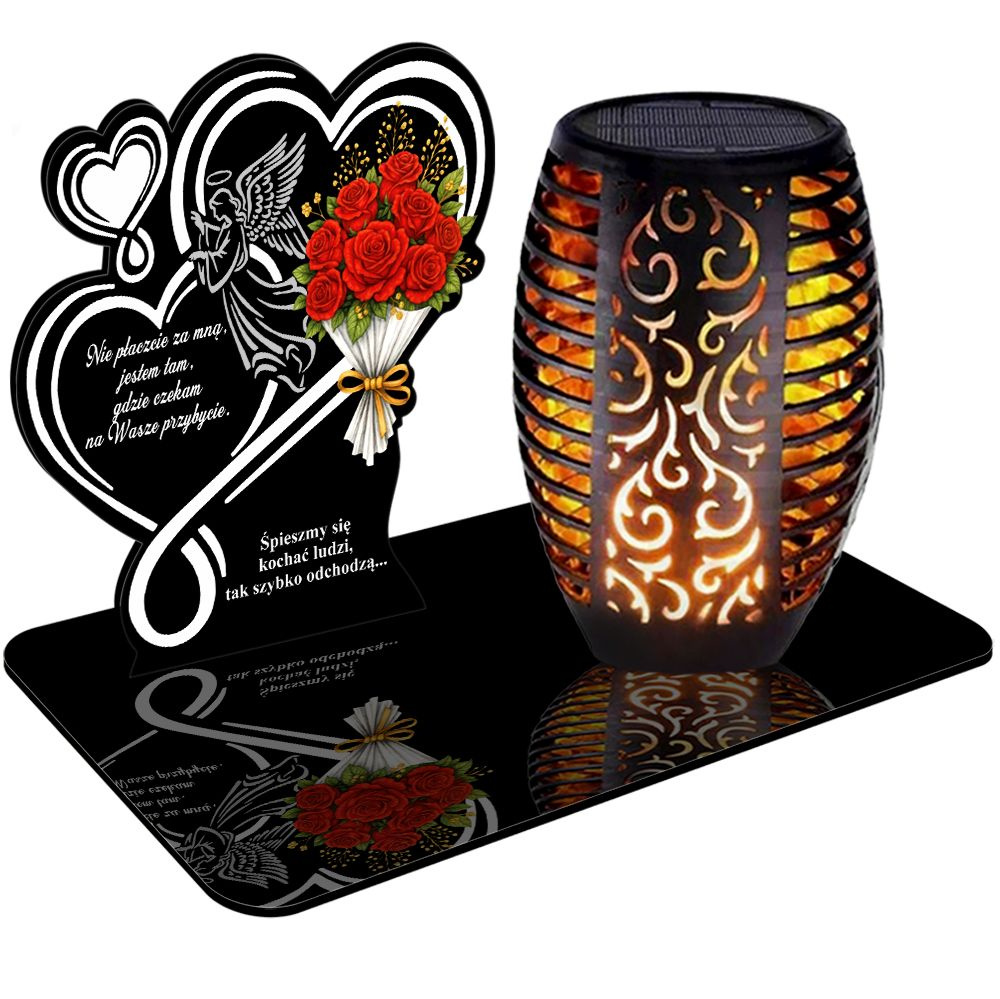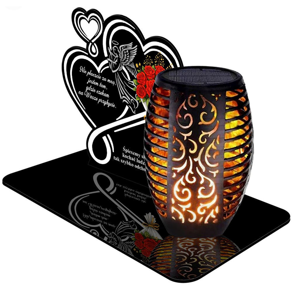 ZNICZ SOLARNY LED PREMIUM XL ze zdobieniem - wieczny znicz z wbudowanym czujnikiem zmierzchu i WKŁADEM Z EFEKTEM PŁOMIENIA