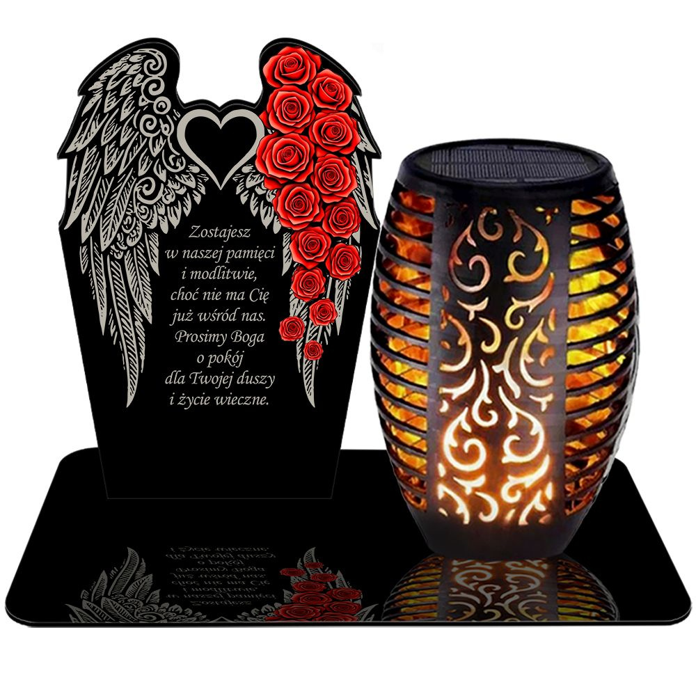 ZNICZ SOLARNY LED PREMIUM XL ze zdobieniem - wieczny znicz z wbudowanym czujnikiem zmierzchu i WKŁADEM Z EFEKTEM PŁOMIENIA