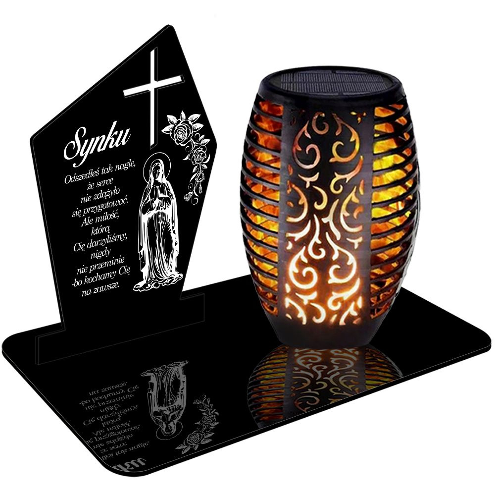 ZNICZ SOLARNY LED WIECZNY PODSTAWKA NA CMENTARZ GRÓB Krzyż EFEKT PŁOMIENIA dla Syna
