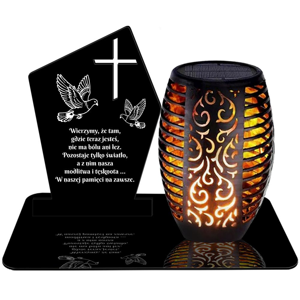 ZNICZ SOLARNY LED PREMIUM XL ze zdobieniem - wieczny znicz z wbudowanym czujnikiem zmierzchu i WKŁADEM Z EFEKTEM PŁOMIENIA