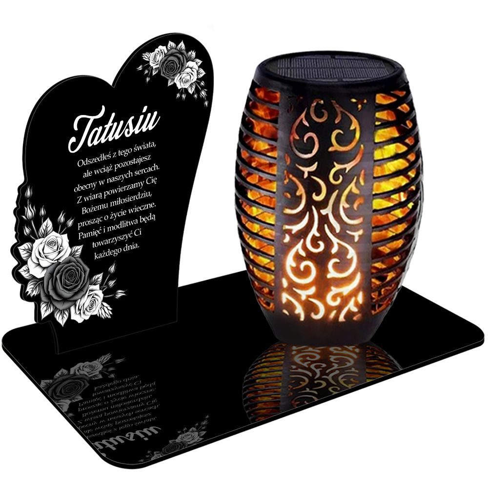 ZNICZ SOLARNY LED WIECZNY PODSTAWKA NA CMENTARZ GRÓB Krzyż EFEKT PŁOMIENIA dla Taty