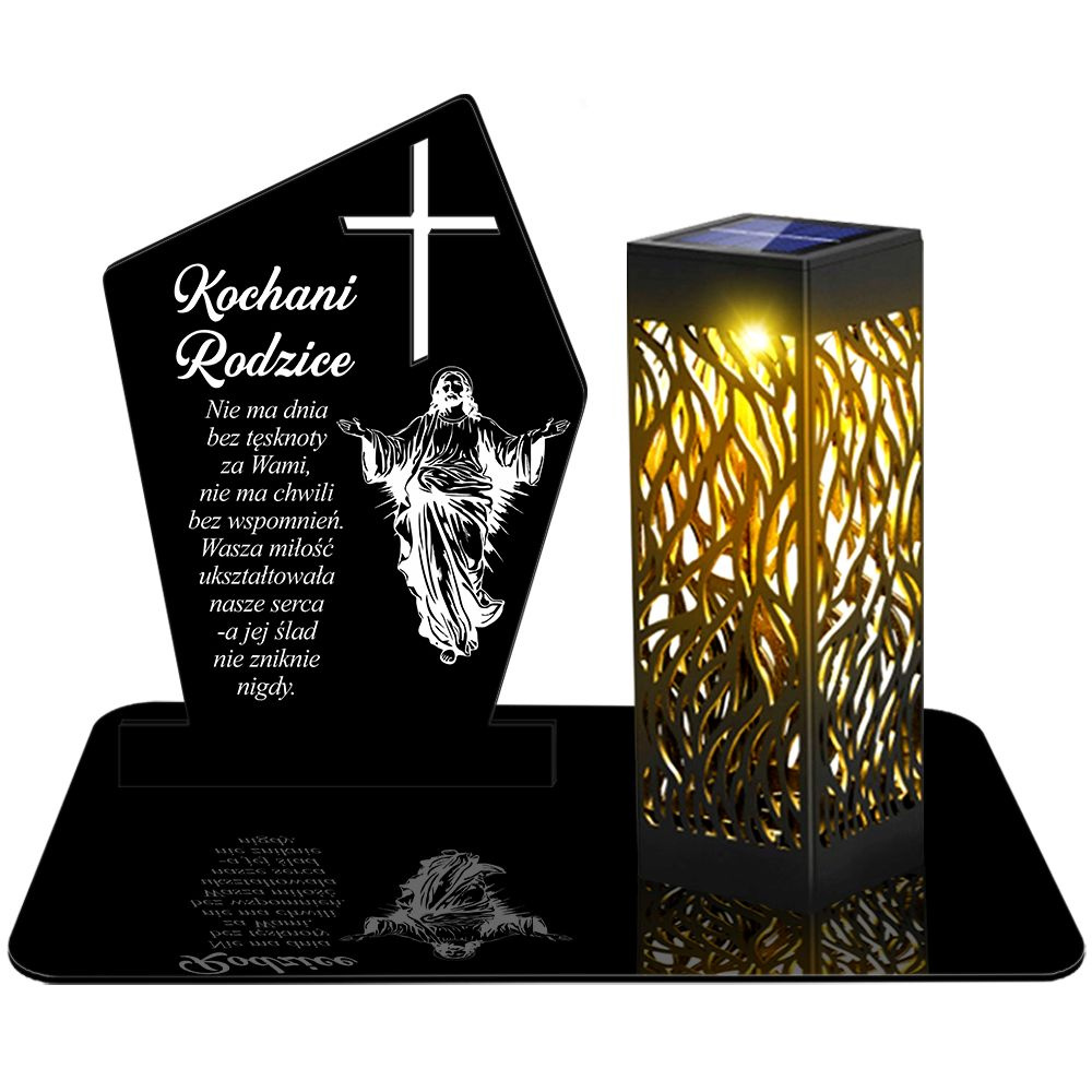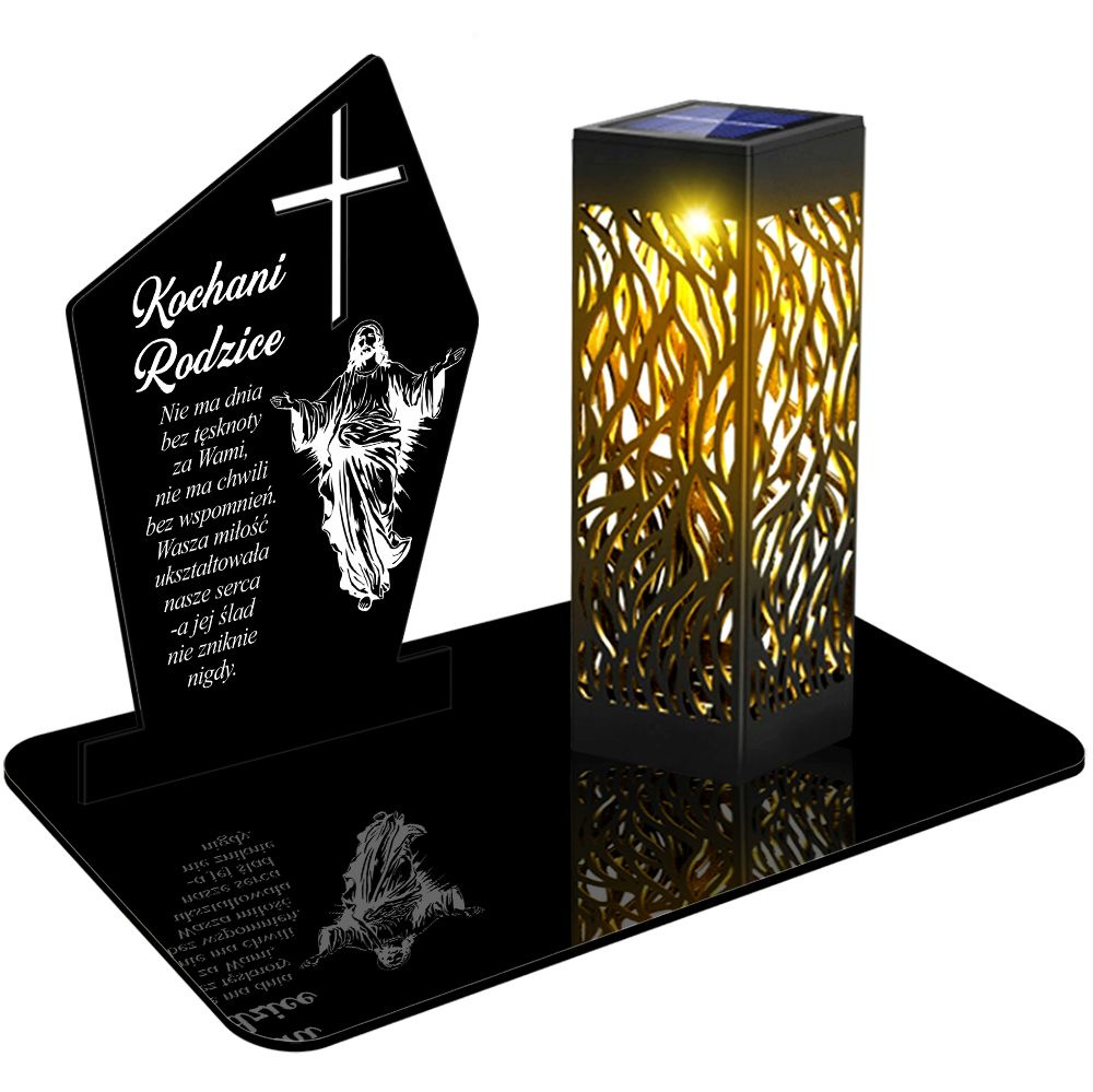 ZNICZ SOLARNY LED WIECZNY PODSTAWKA NA CMENTARZ GRÓB lampka Krzyż 3D dla Rodziców