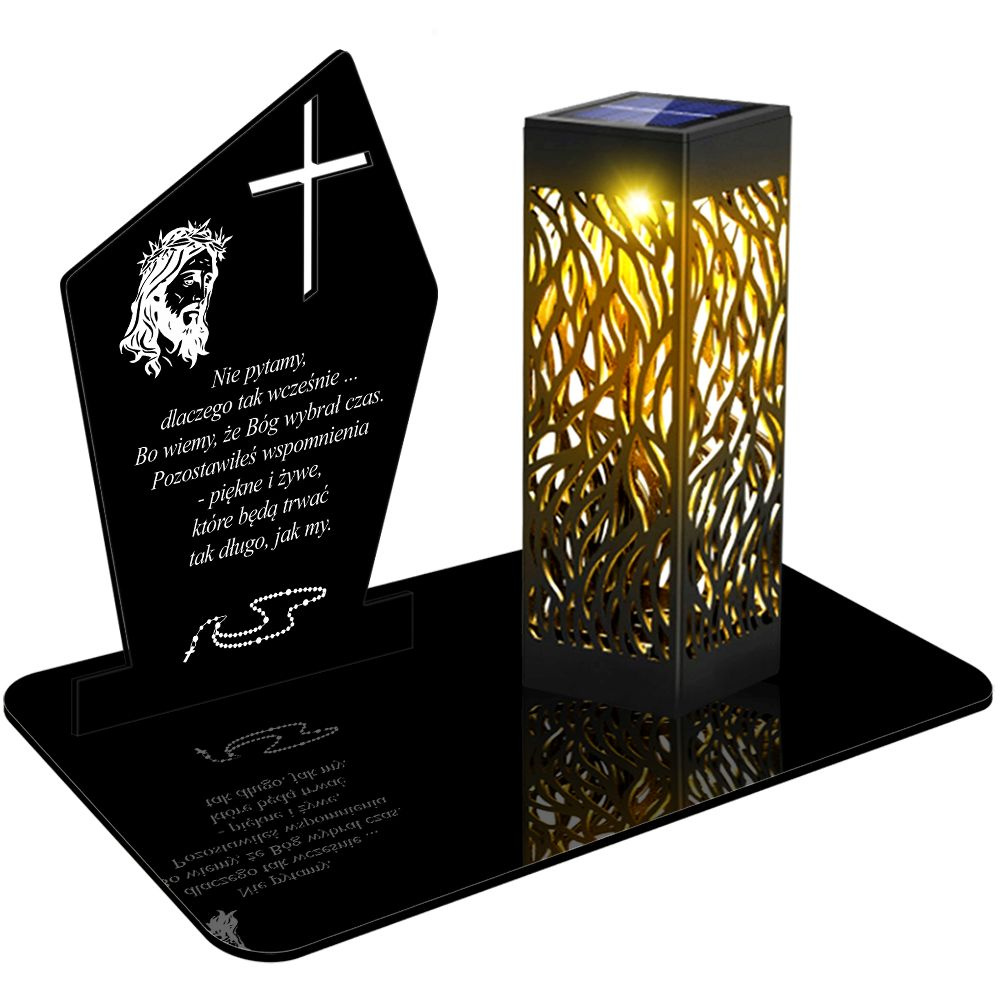 • ZNICZ SOLARNY LED WIECZNY PODSTAWKA NA CMENTARZ GRÓB lampka Krzyż 3D