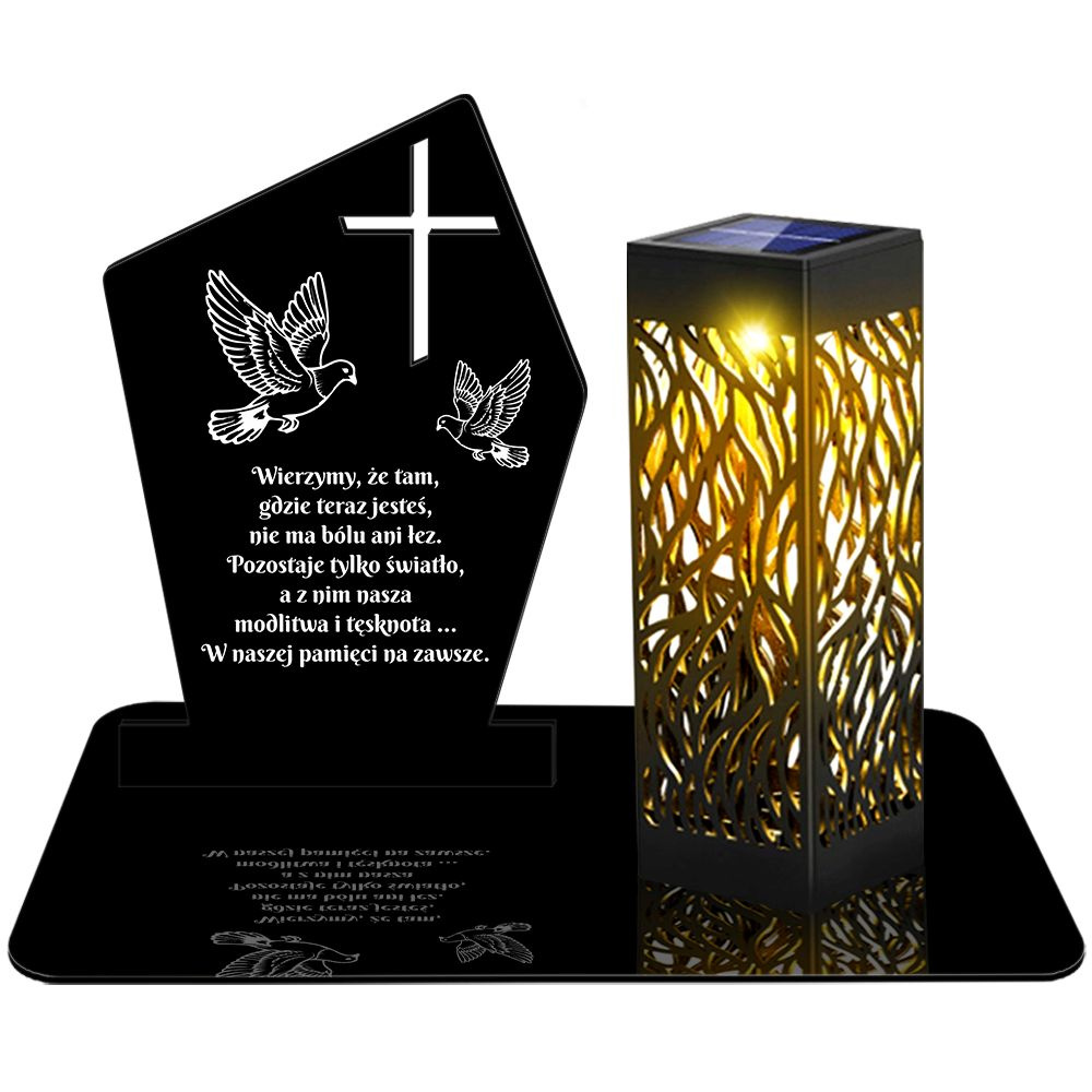 • ZNICZ SOLARNY LED WIECZNY PODSTAWKA NA CMENTARZ GRÓB lampka Krzyż 3D