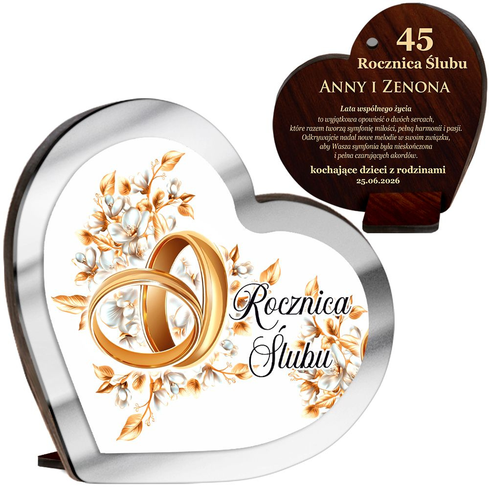 Wyjątkowy prezent z okazji Rocznicy Ślubu – obrazek w kształcie serca z grafiką przedstawiającą motyw ślubny