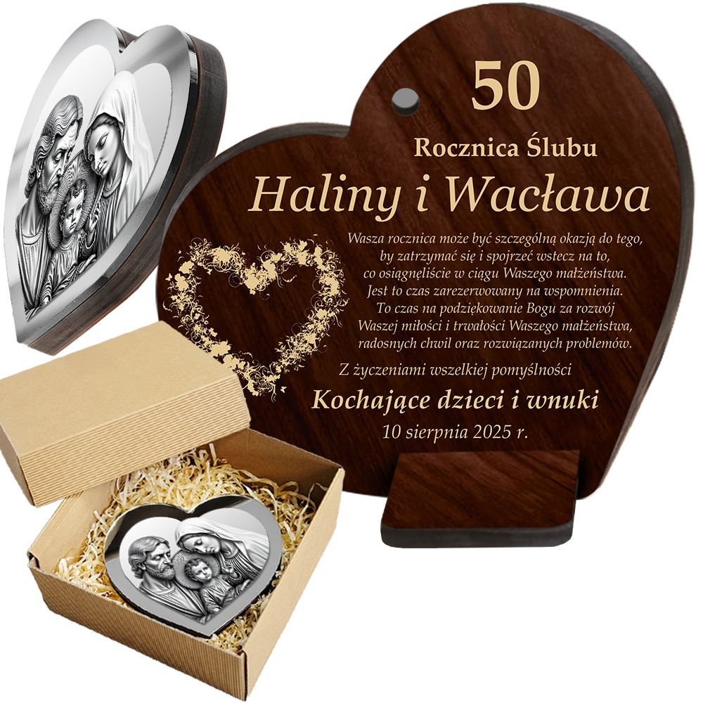 Wyjątkowy prezent z okazji Rocznicy Ślubu – obrazek w kształcie serca z grafiką przedstawiającą Świętą Rodzinę