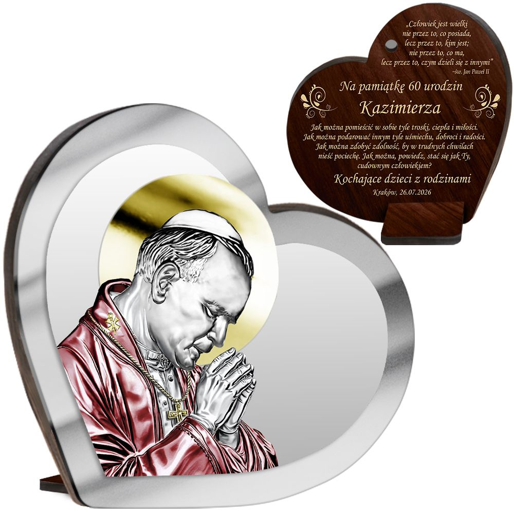 Wyjątkowy prezent z okazji Urodzin – obrazek w kształcie serca z grafiką przedstawiającą Jana Pawła II lub Świętą Rodzinę