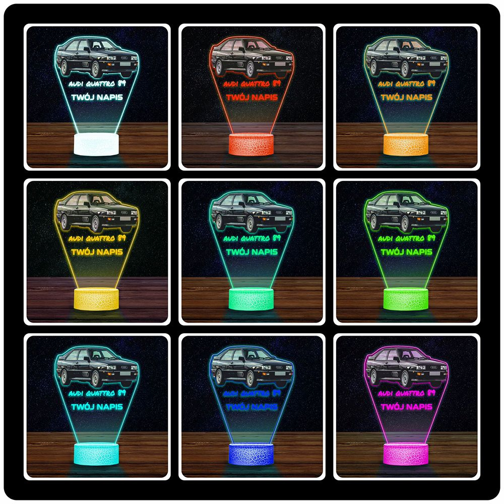 LAMPKA NOCNA LED 3D AUDI QUATTRO 89 SAMOCHÓD prezent dla dziecka URODZINY statuetka + pilot