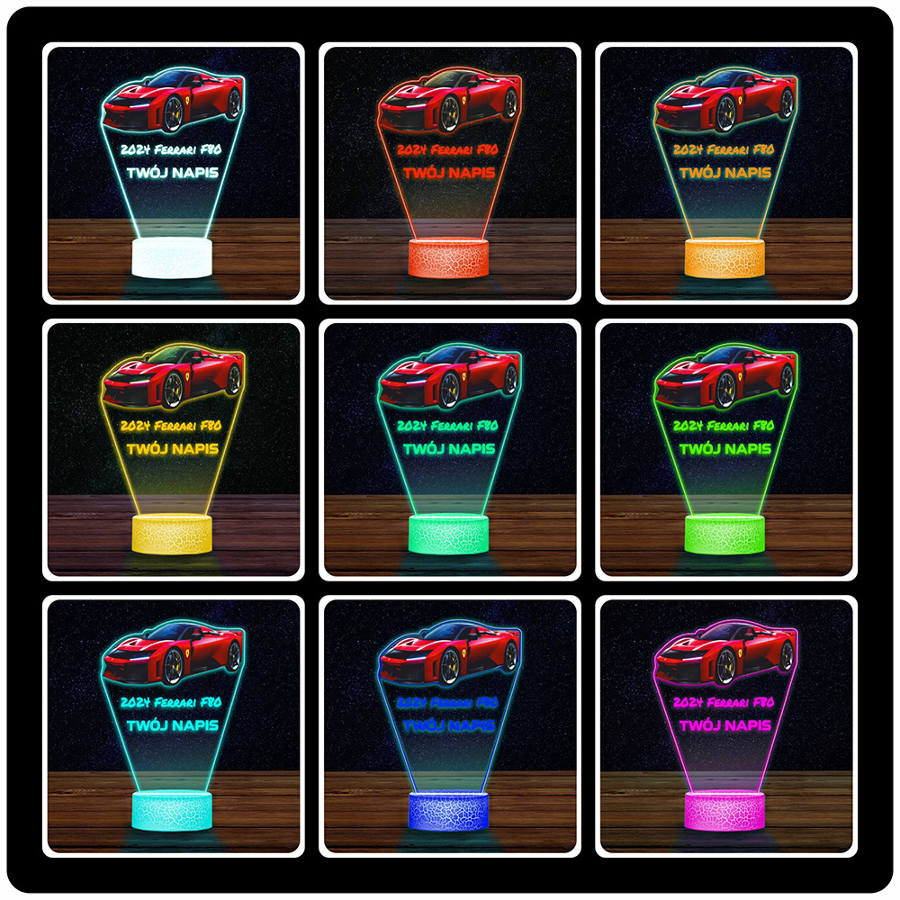 LAMPKA NOCNA LED 3D AUTO FERRARI F80 prezent dla dziecka URODZINY statuetka + pilot