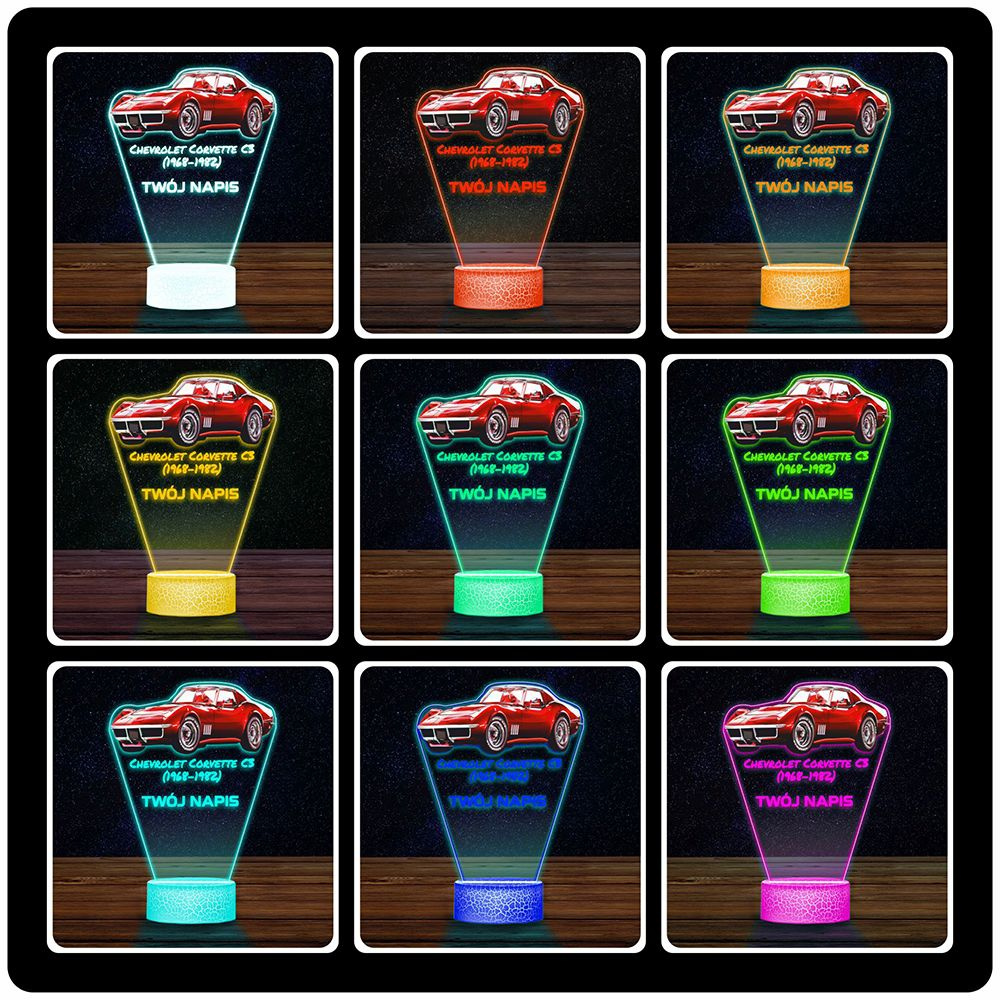 LAMPKA NOCNA LED 3D AUTO Chevrolet Corvette C3 prezent dla dziecka URODZINY statuetka + pilot