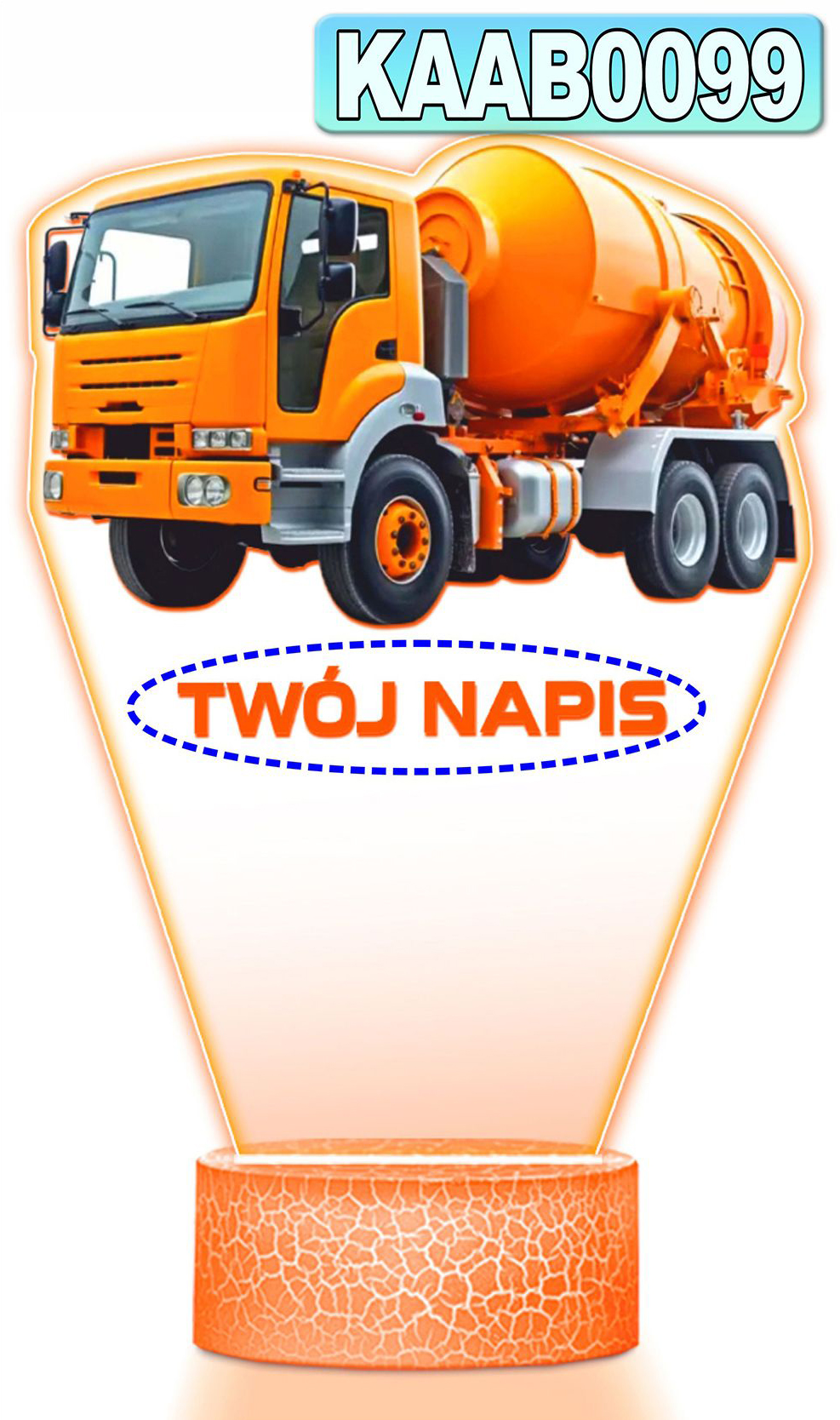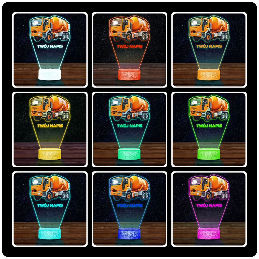 LAMPKA NOCNA LED 3D AUTO MAJSTRA BETONIARKA prezent dla dziecka URODZINY statuetka + pilot