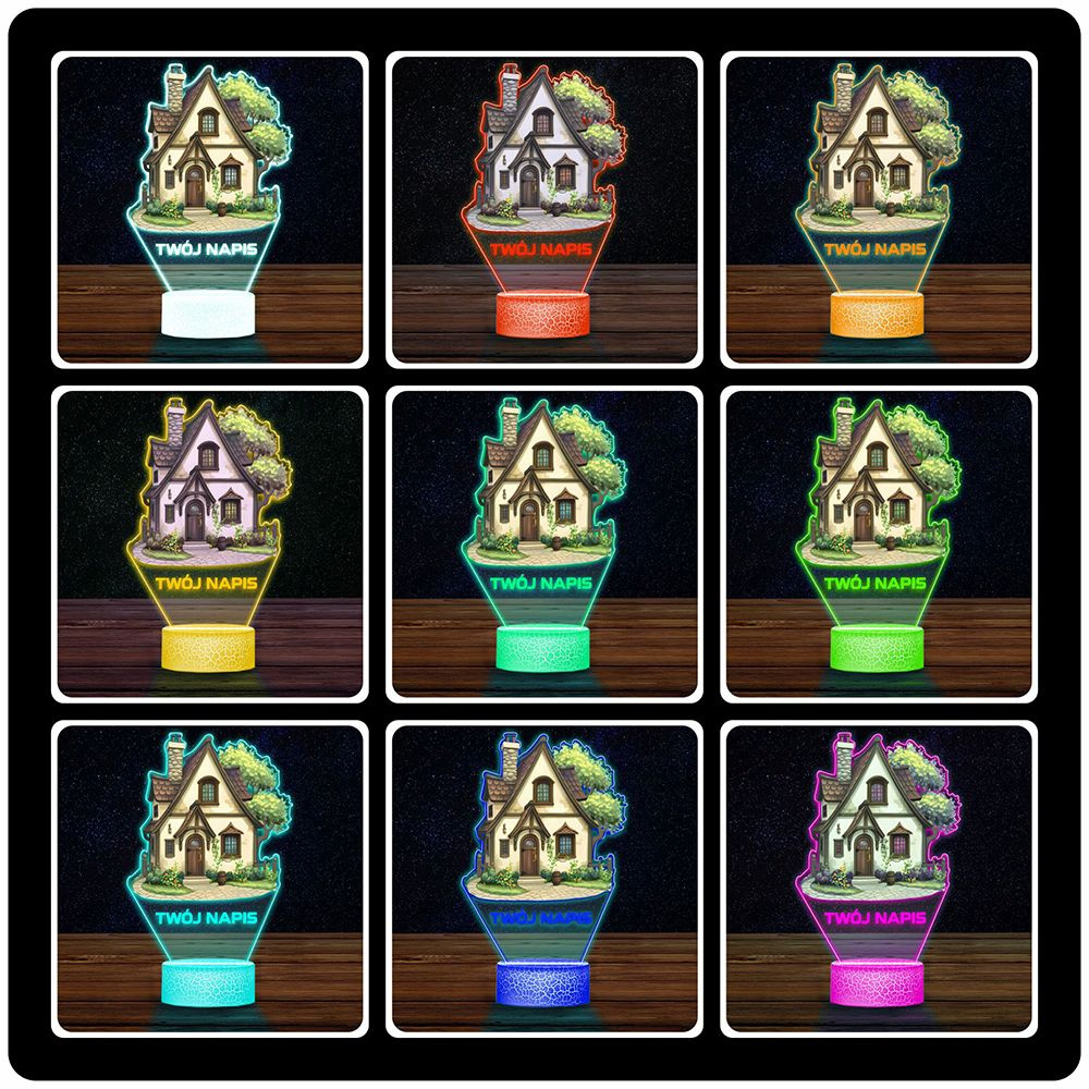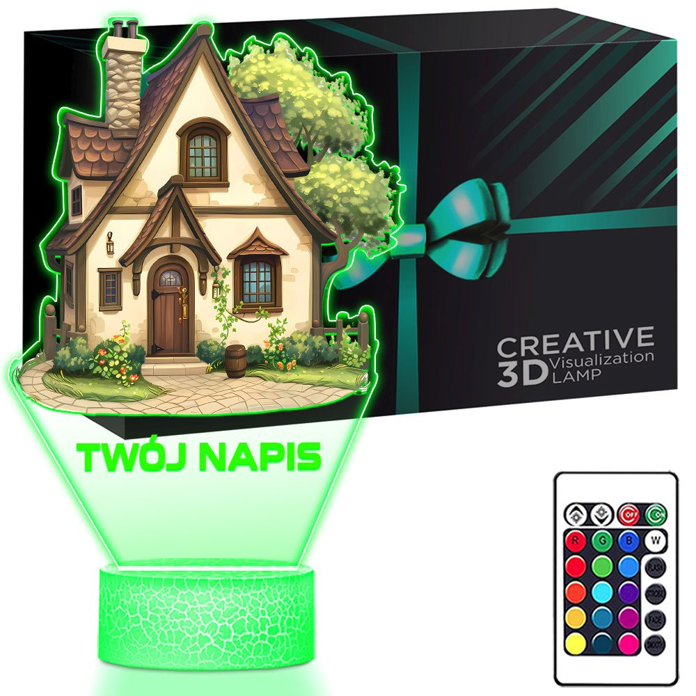 LAMPKA NOCNA LED 3D DOMEK CHATKA Z BAJKI prezent dla dziecka URODZINY statuetka + pilot