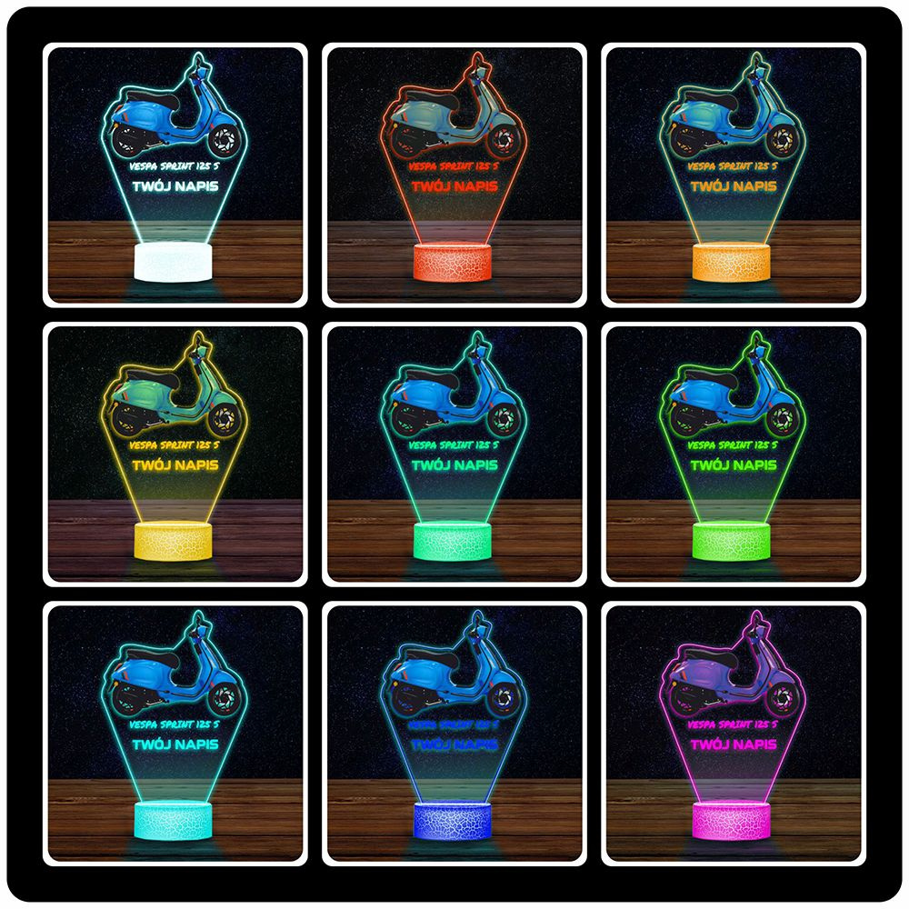 LAMPKA NOCNA LED 3D Motor Skuter Vespa SPRINT 125 prezent dla dziecka URODZINY statuetka + pilot
