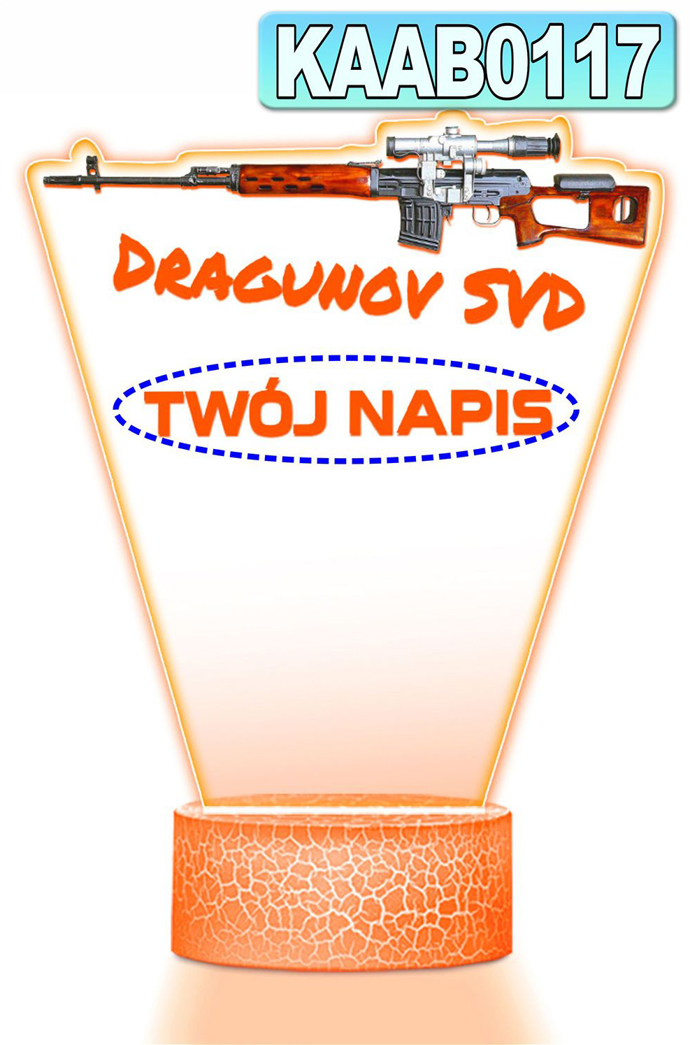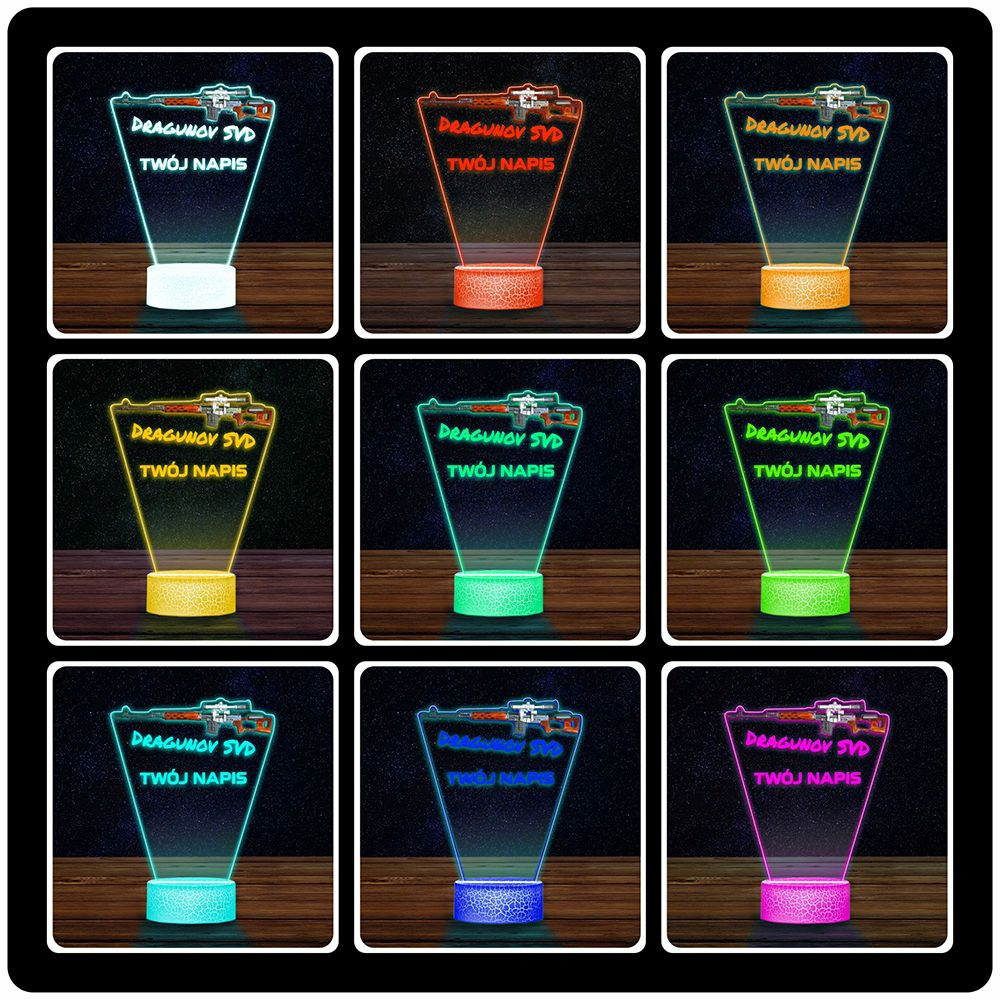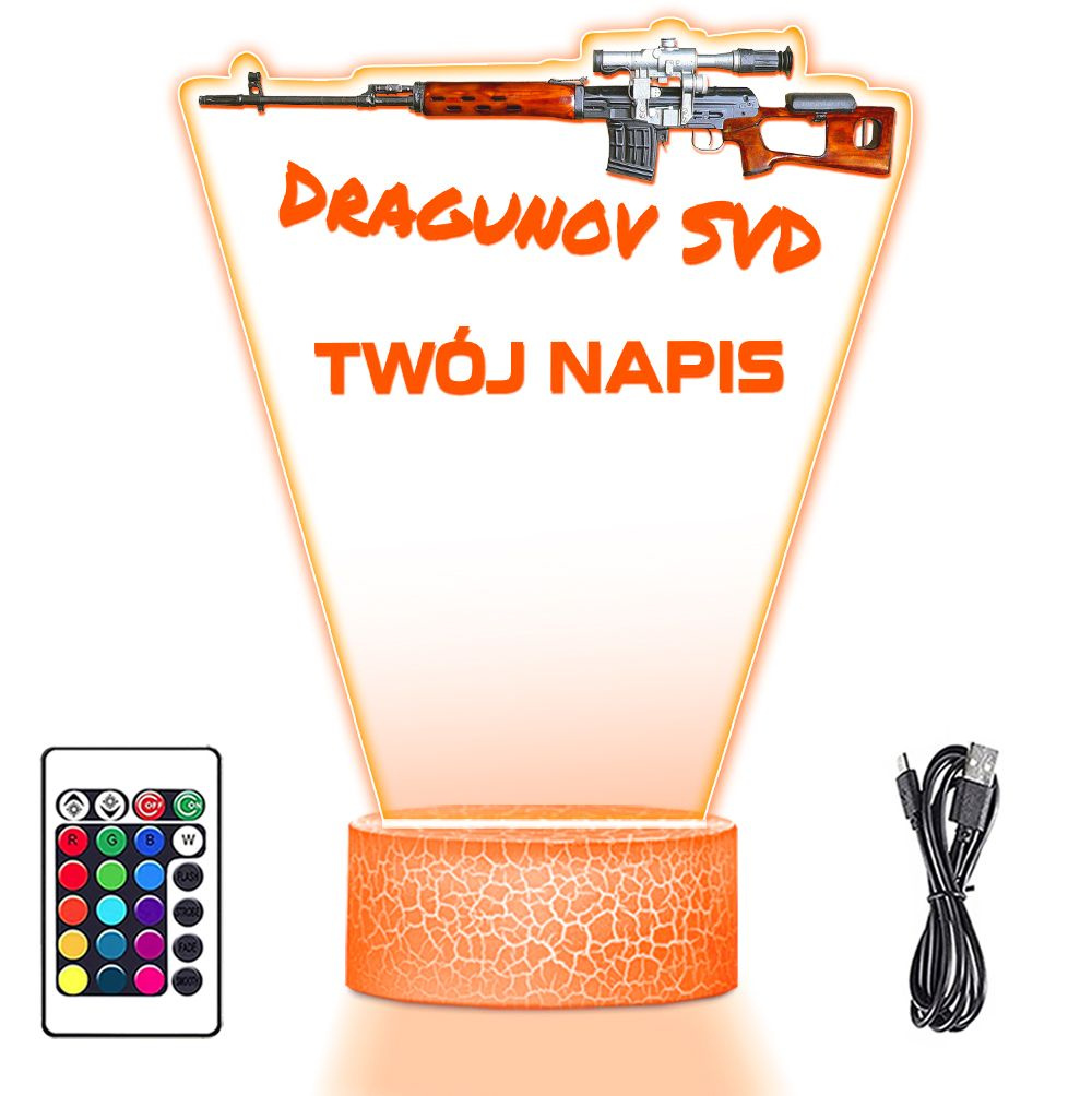 LAMPKA NOCNA LED 3D KARABIN BROŃ SWD Dragunow prezent dla dziecka URODZINY statuetka + pilot