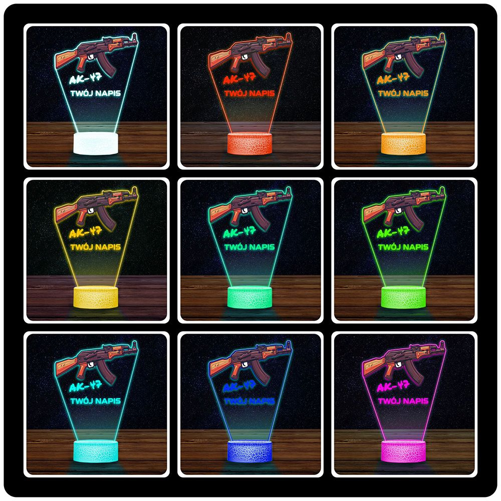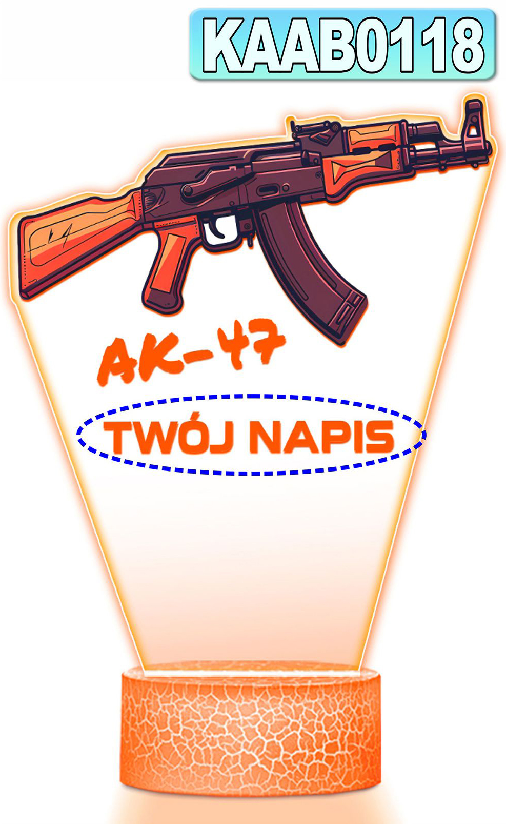 LAMPKA NOCNA LED 3D KARABIN BROŃ Karabinek AK-47 prezent dla dziecka URODZINY statuetka + pilot