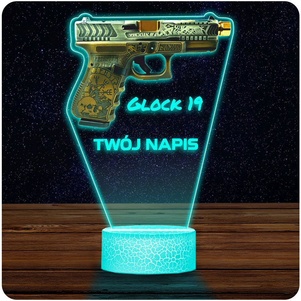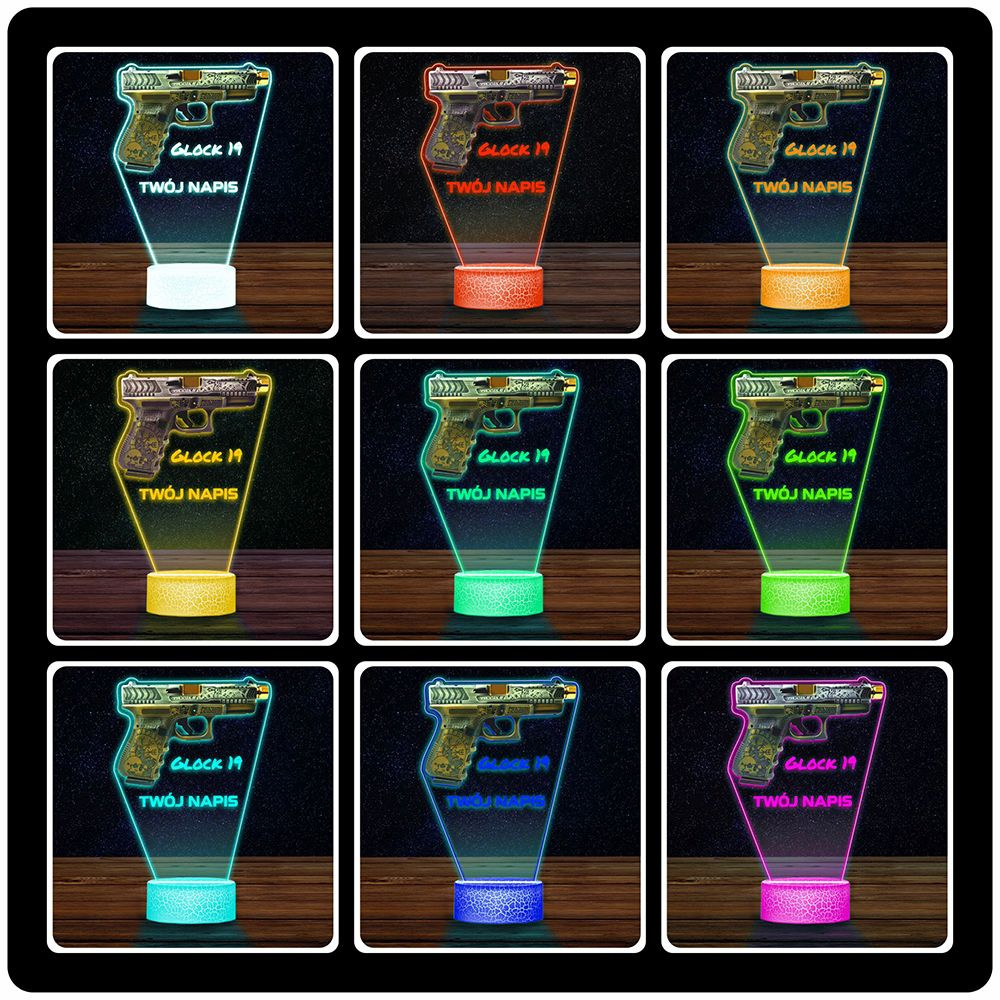 LAMPKA NOCNA LED 3D KARABIN BROŃ PISTOLET GLOCK prezent dla dziecka URODZINY statuetka + pilot