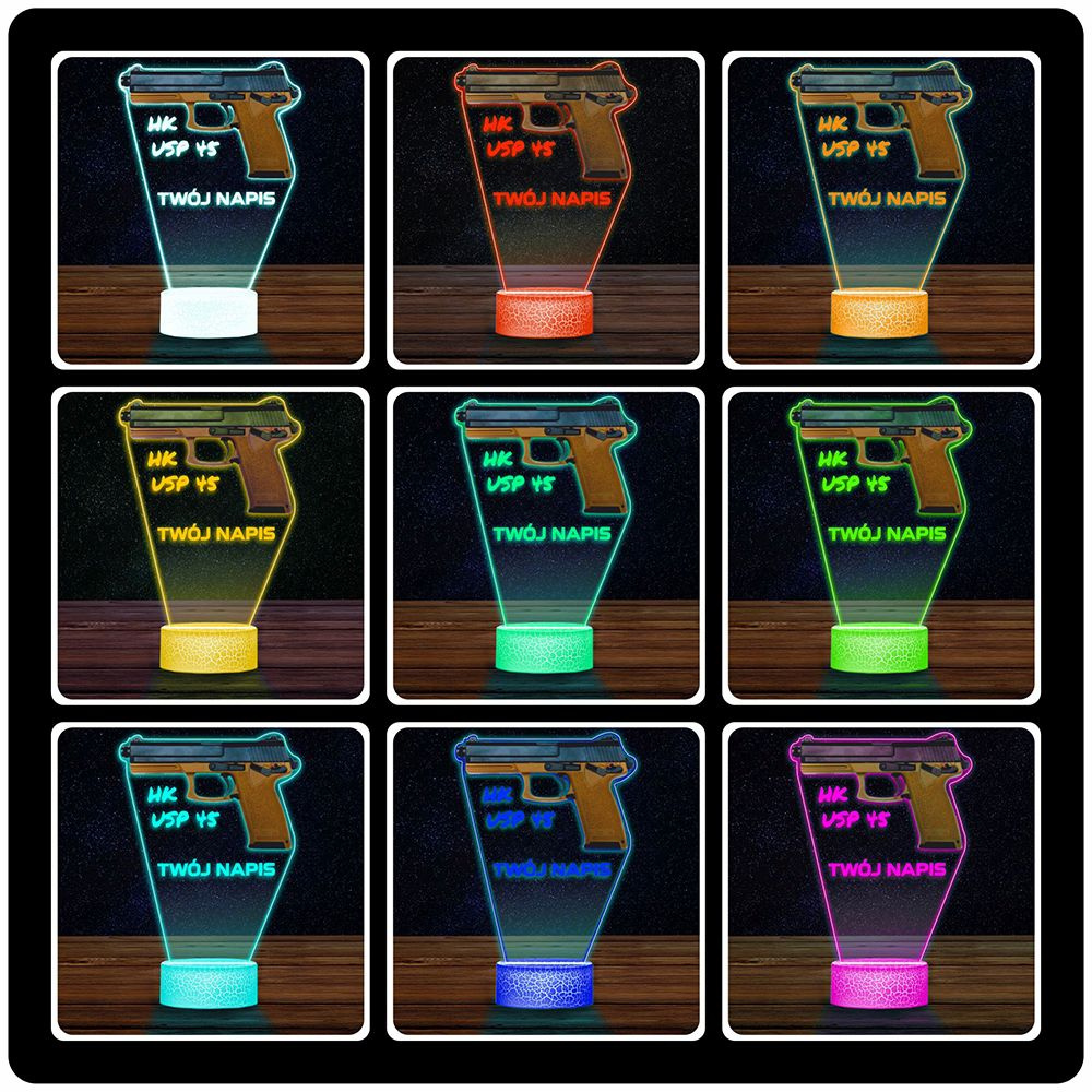 LAMPKA NOCNA LED 3D KARABIN BROŃ PISTOLET HK prezent dla dziecka URODZINY statuetka + pilot