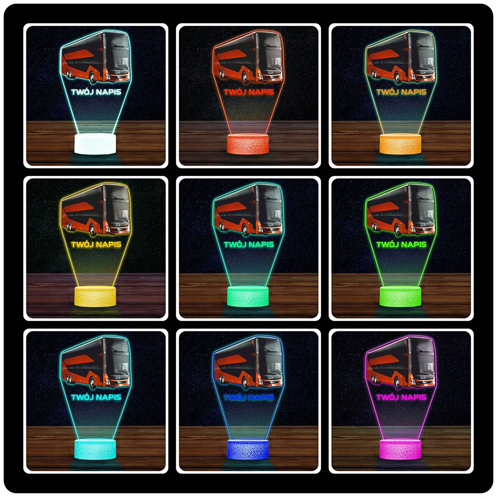 LAMPKA NOCNA LED 3D AUTOBUS AUTOKAR DLA KIEROWCY prezent dla dziecka URODZINY statuetka + pilot