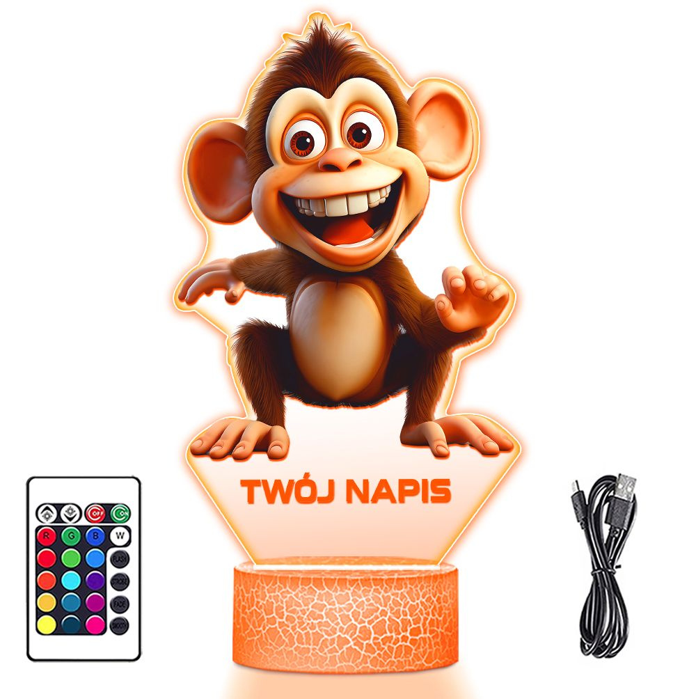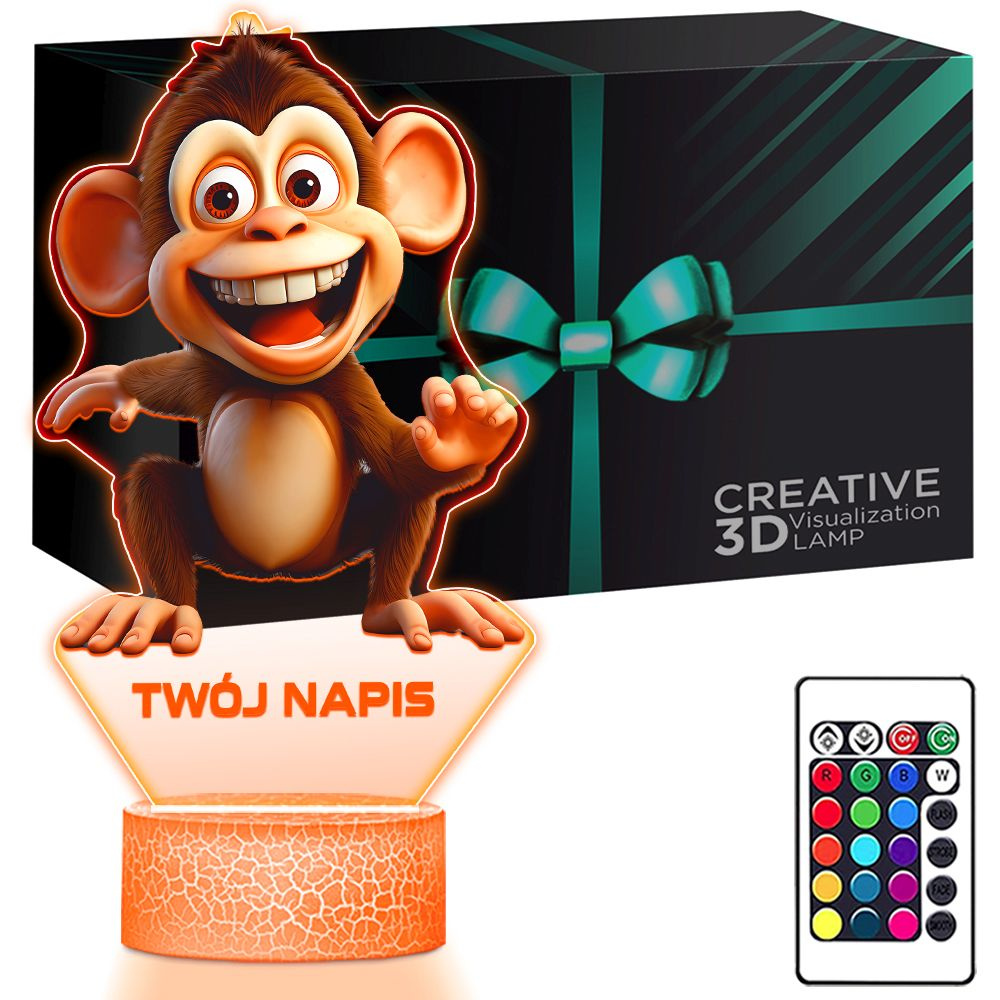 LAMPKA NOCNA LED 3D z imieniem SŁODKA MAŁPKA MAŁPA prezent dla dziecka URODZINY statuetka + pilot