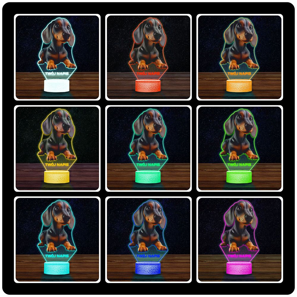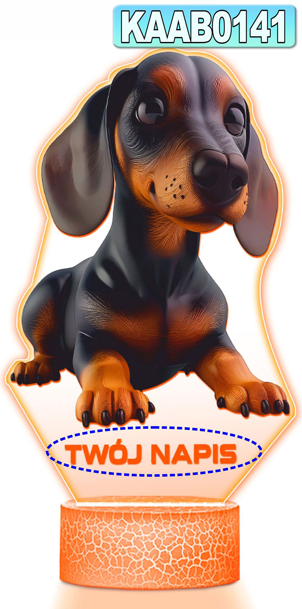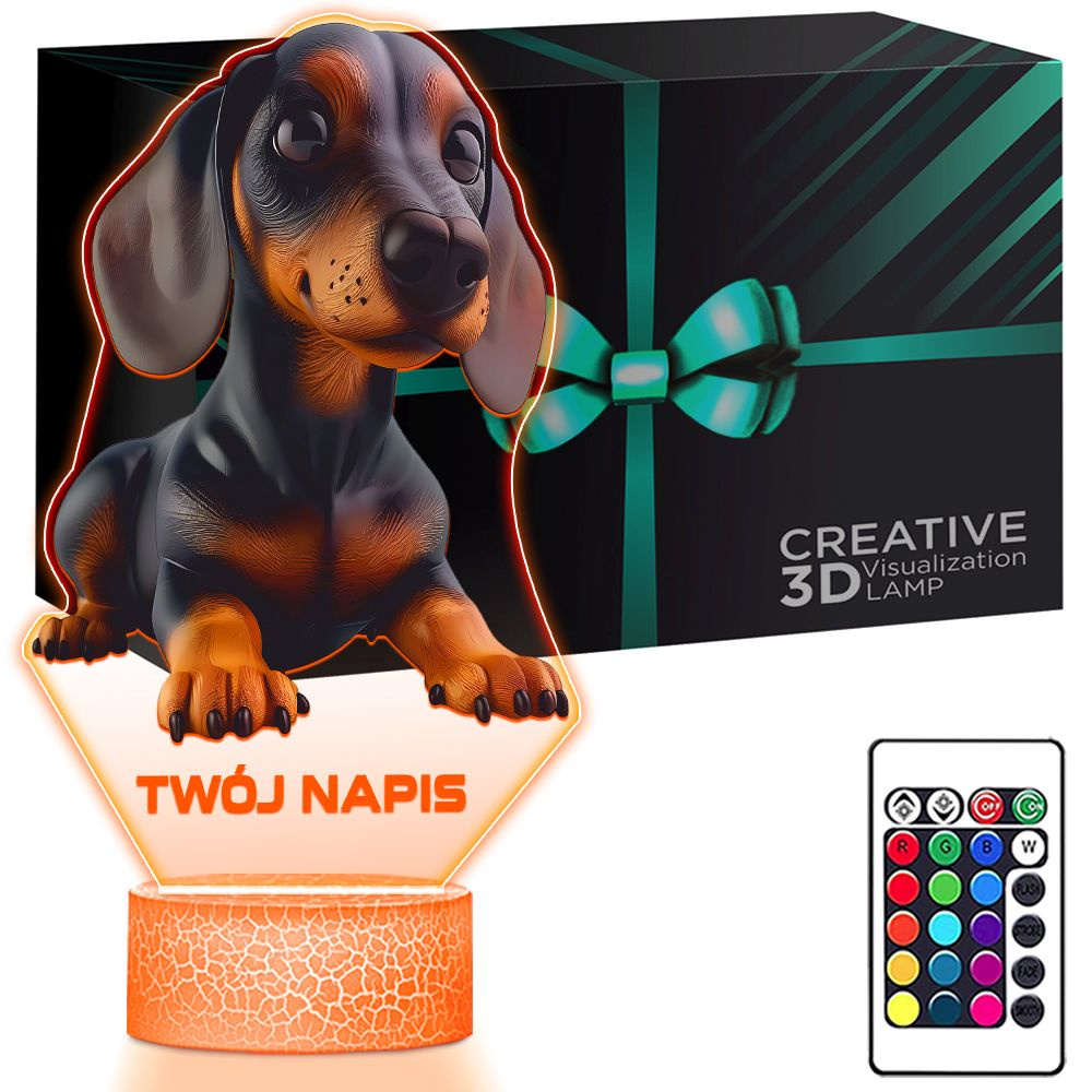 LAMPKA NOCNA LED 3D z imieniem PIESEK Jamnik prezent dla dziecka URODZINY statuetka + pilot