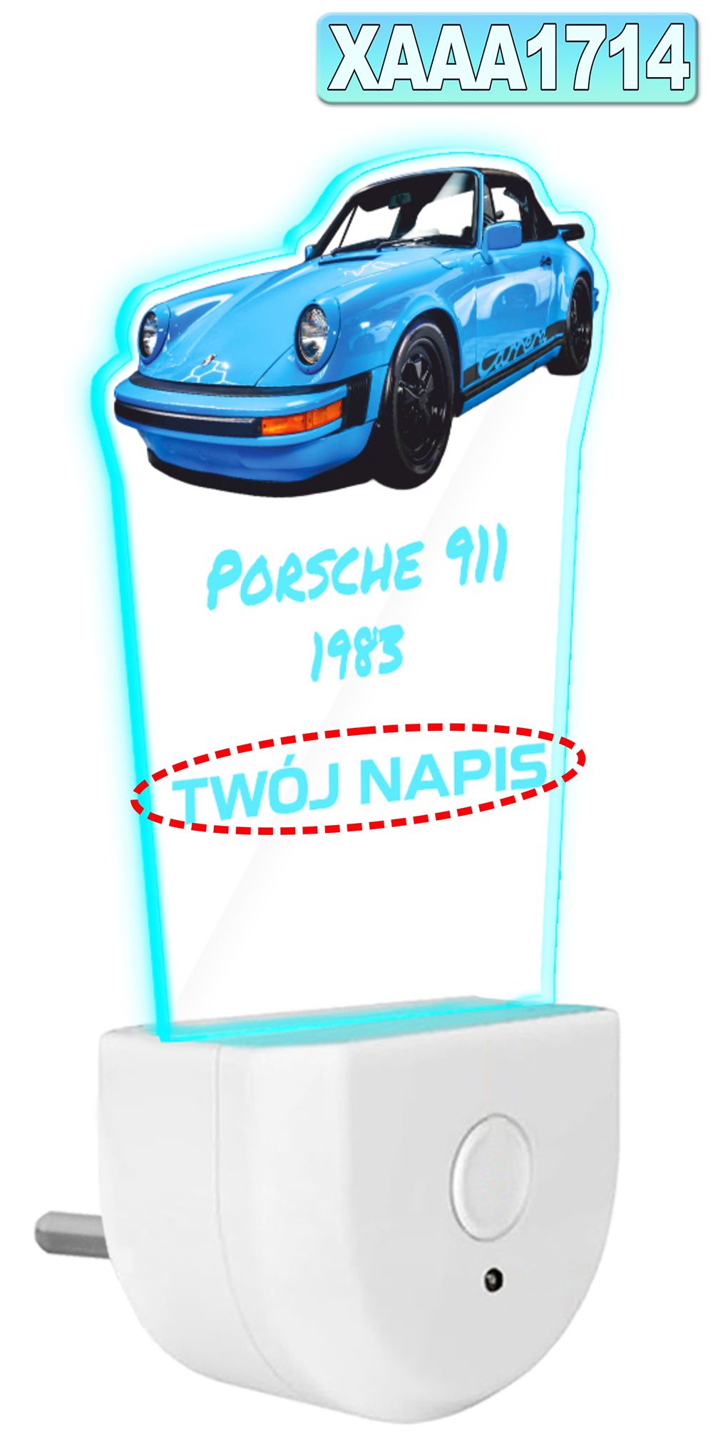• Lampka Nocna LED dla Dziecka auto Porsche 911 kontaktu gniazdka CZUJNIK