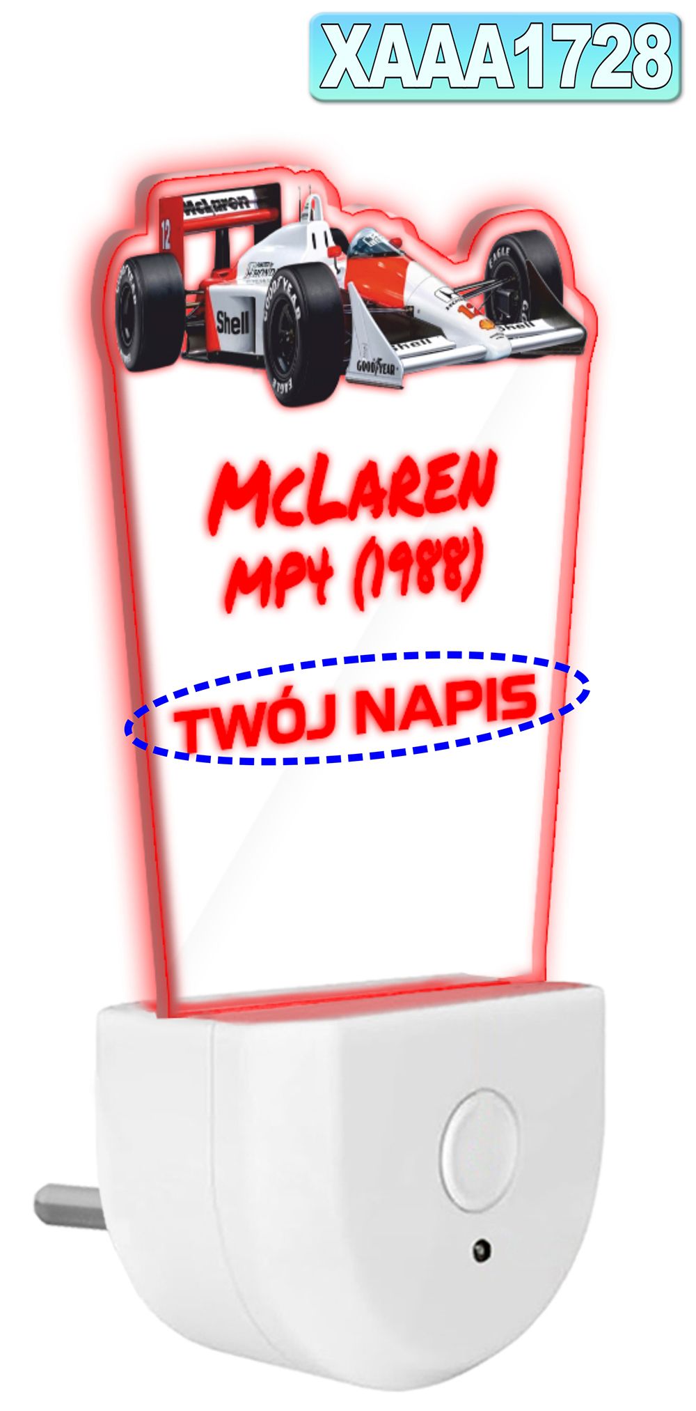 Lampka Nocna LED dla Dziecka McLaren MP4 bolid F1 kontaktu gniazdka CZUJNIK