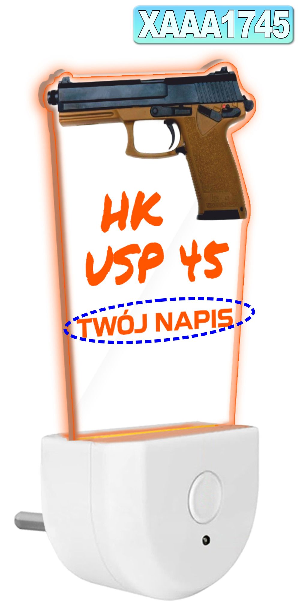 Lampka Nocna LED dla Dziecka KARABIN BROŃ PISTOLET HK gniazdka CZUJNIK