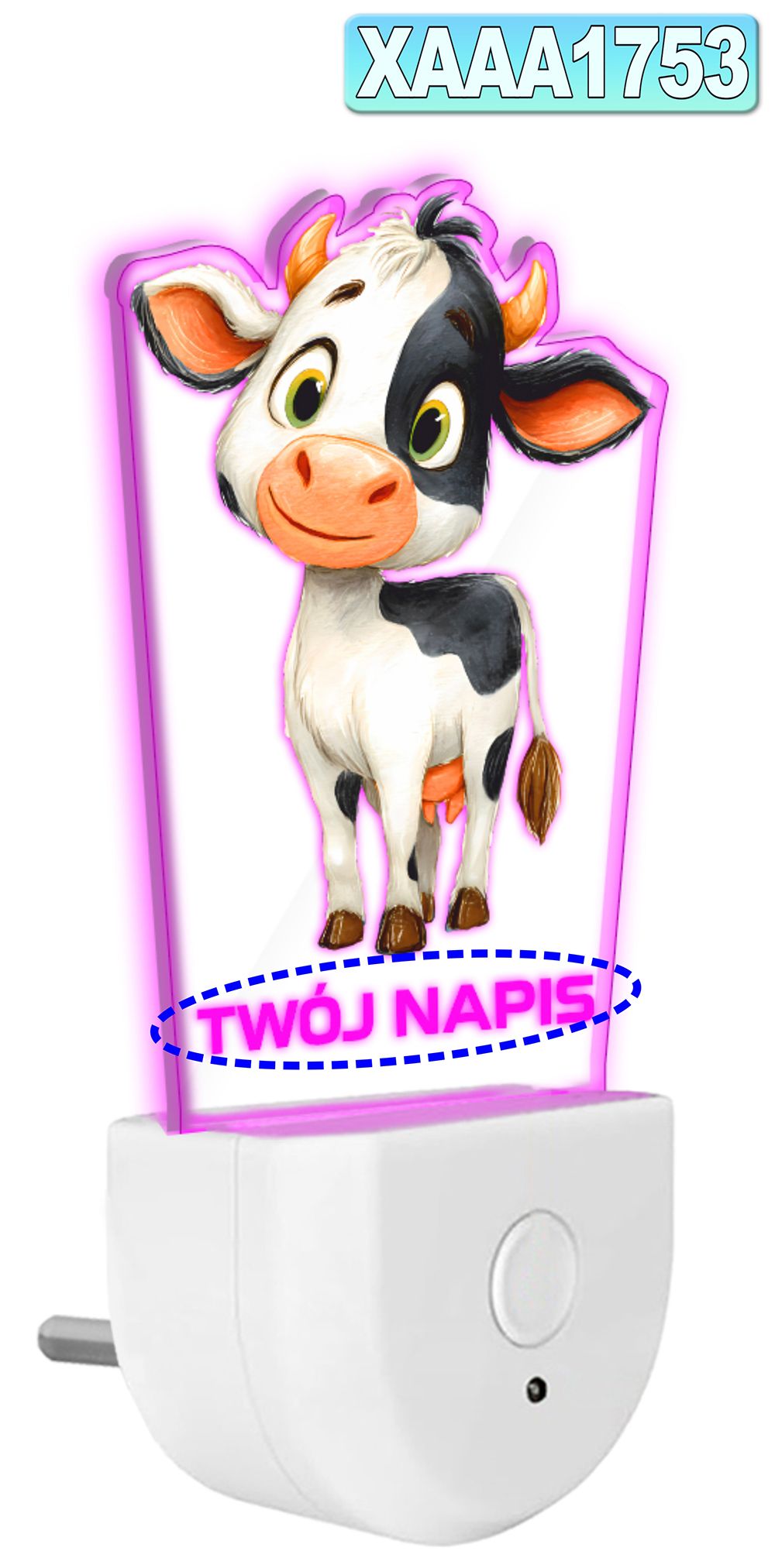 • Lampka Nocna LED dla Dziecka Krowa Krówka Farma do gniazdka CZUJNIK