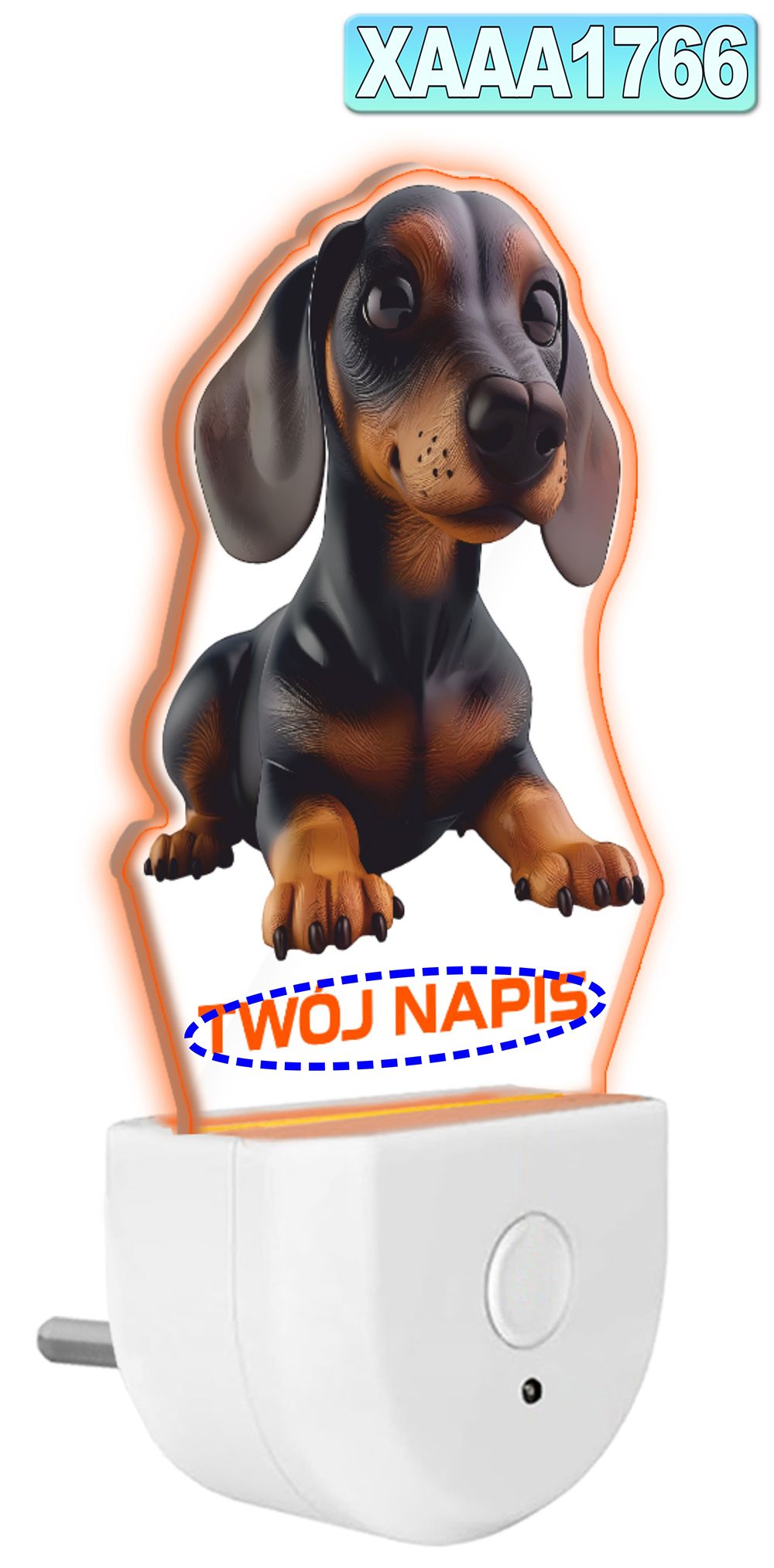 Lampka Nocna LED dla Dziecka PIESEK Jamnik dog do kontaktu gniazdka CZUJNIK