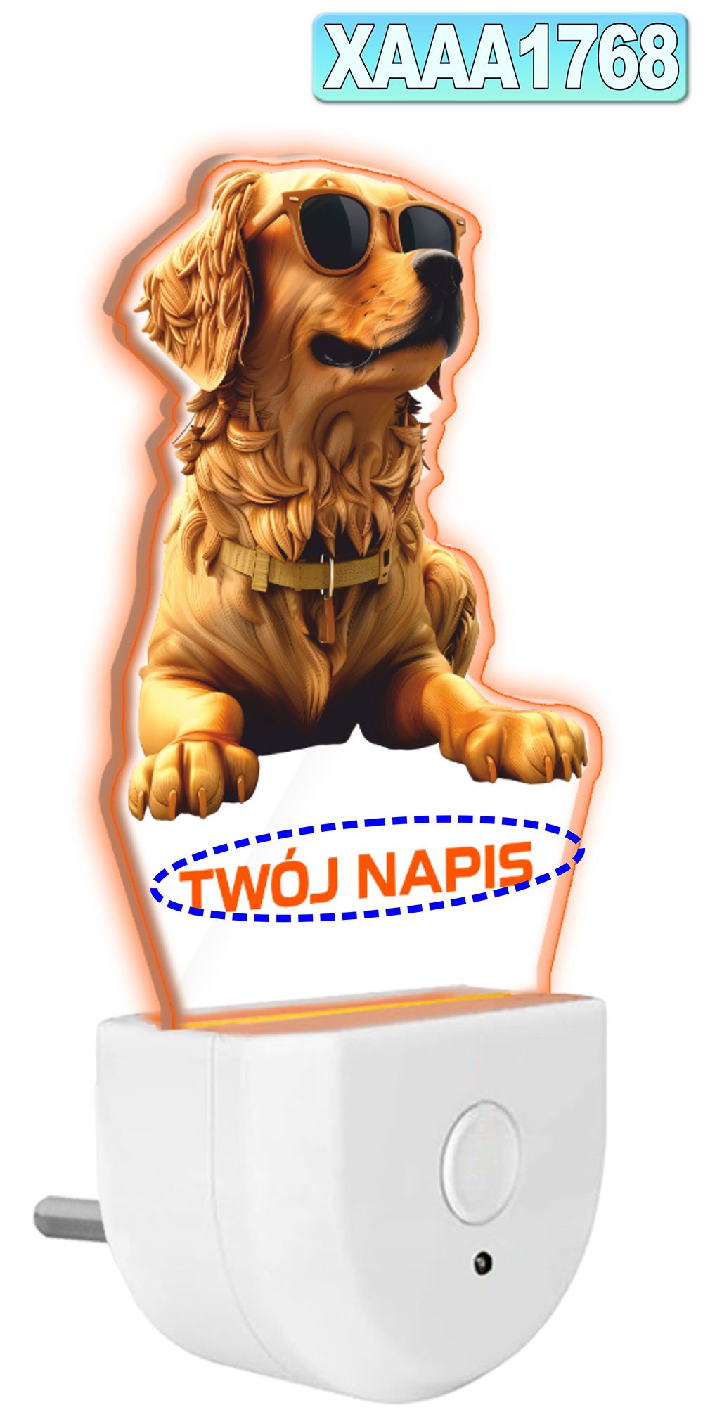 Lampka Nocna LED dla Dziecka PIESEK RETRIEVER do kontaktu gniazdka CZUJNIK