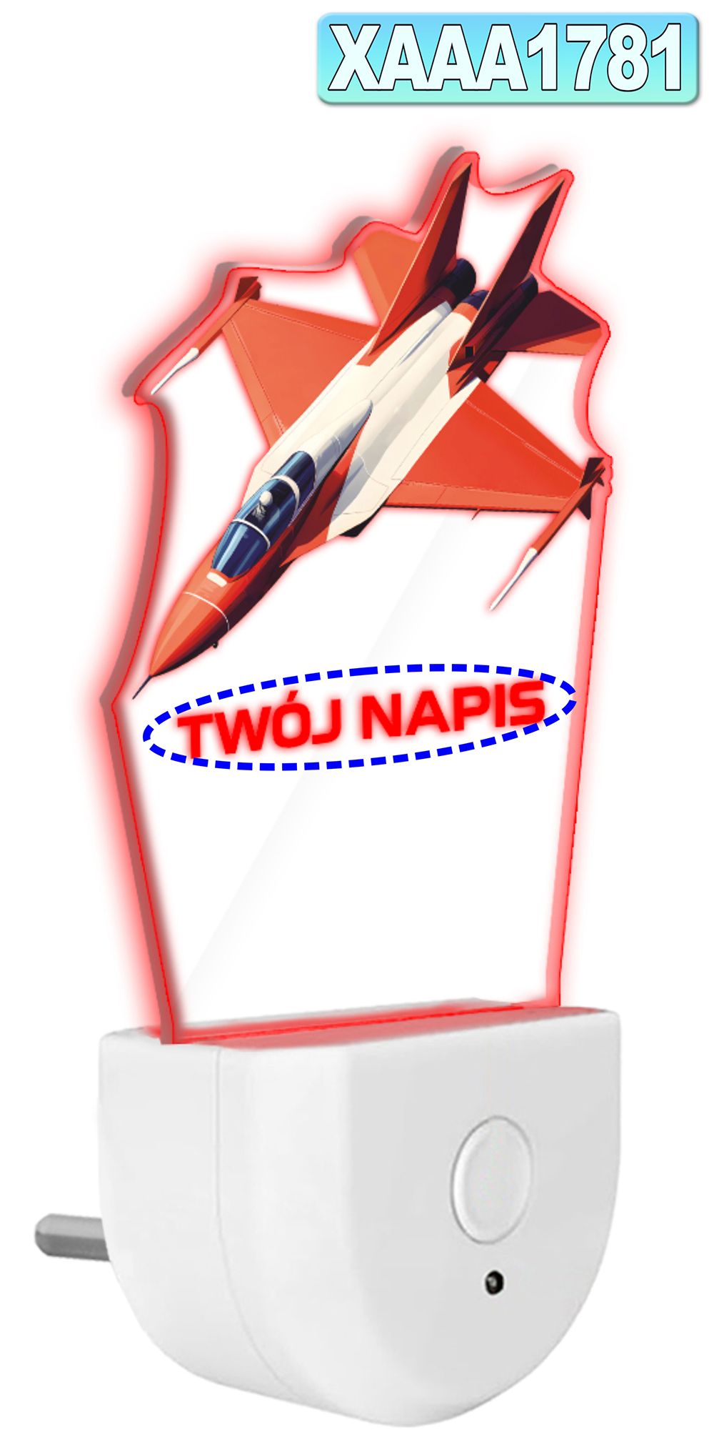 • Lampka Nocna LED dla Dziecka SAMOLOT ODRZUTOWIEC kontaktu gniazdka CZUJNIK