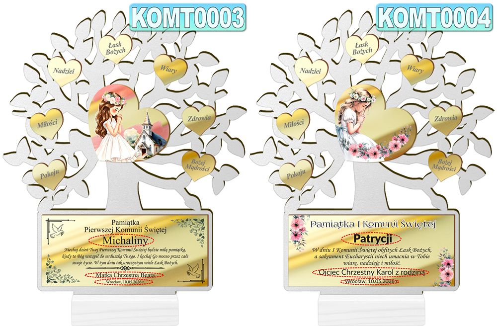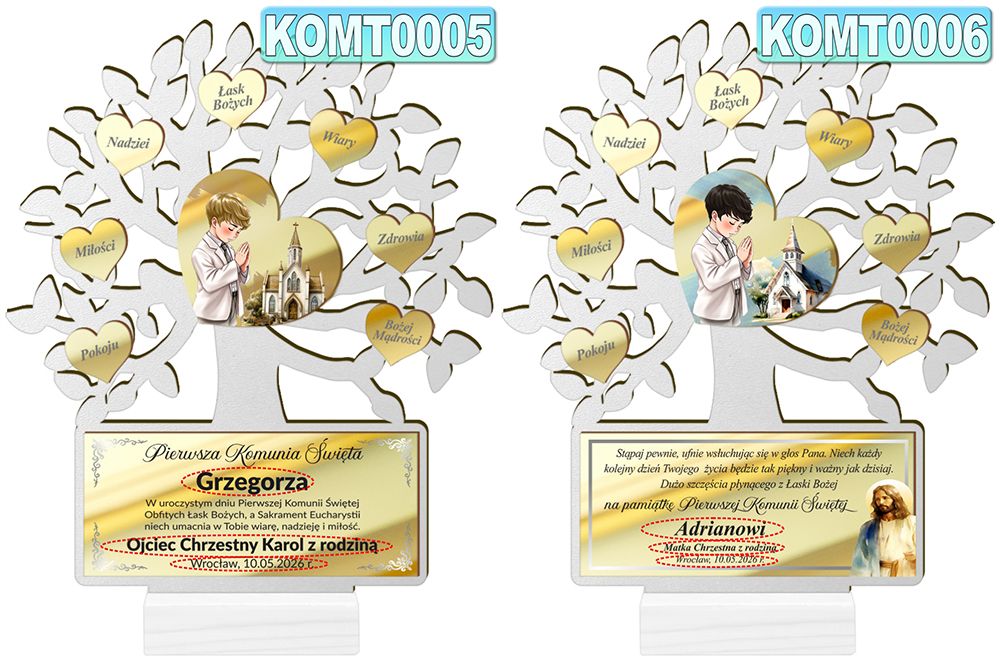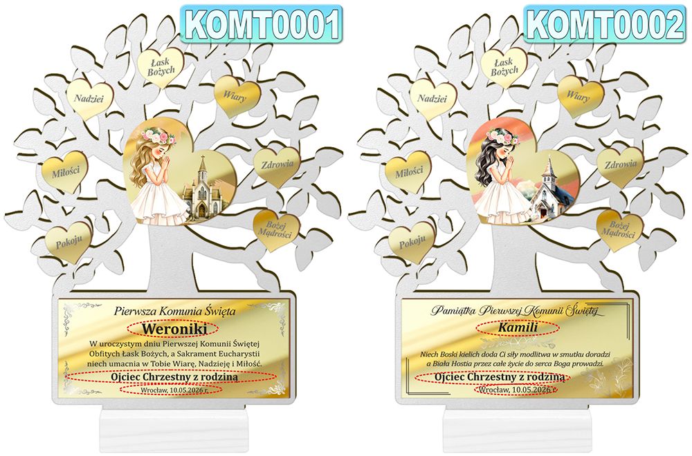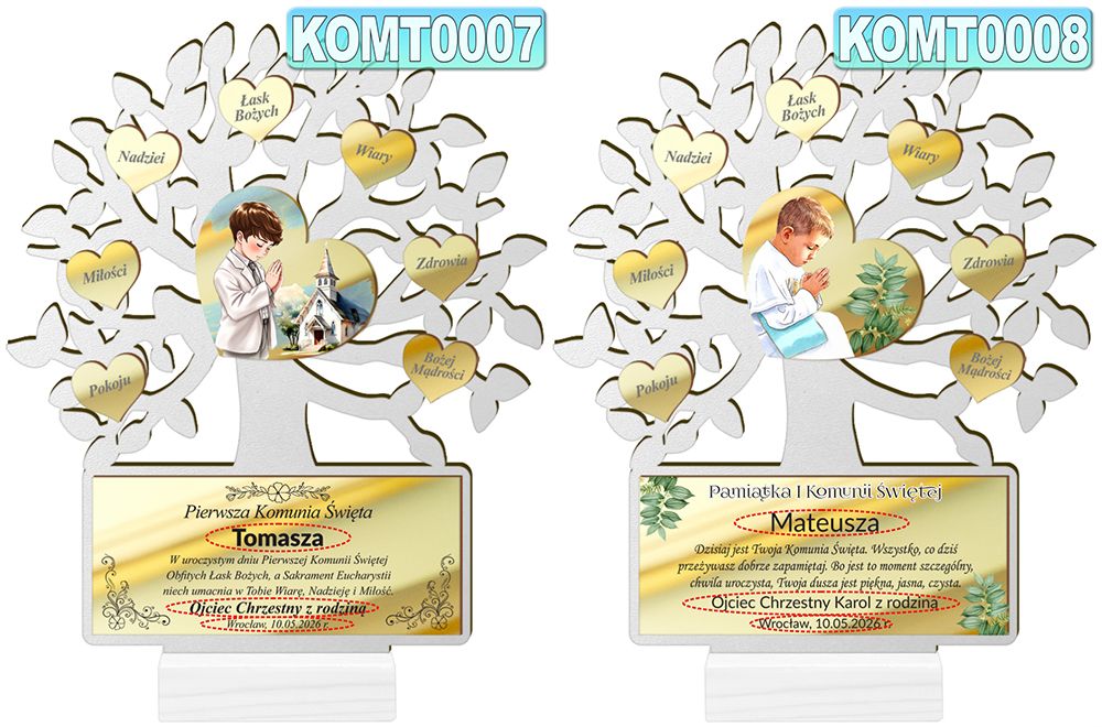 DREWNIANE DRZEWKO Pamiątka na Pierwszą Komunię Świętą z personalizacją