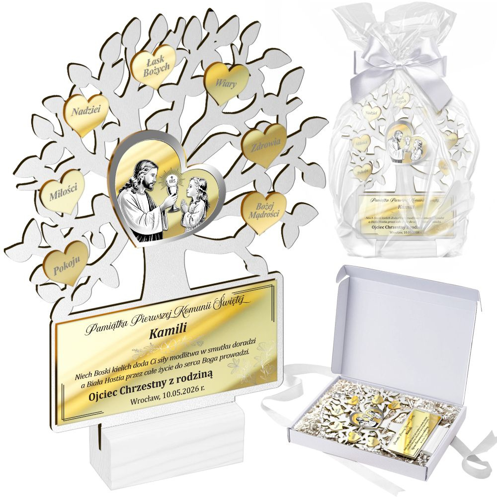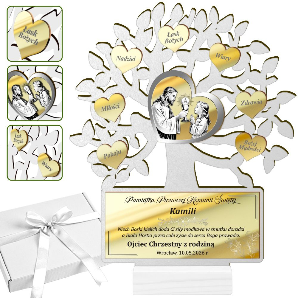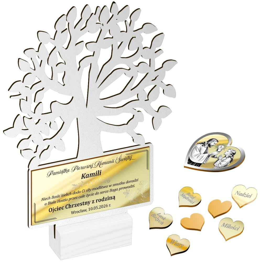 DREWNIANE DRZEWKO Pamiątka na Pierwszą Komunię Świętą z personalizacją