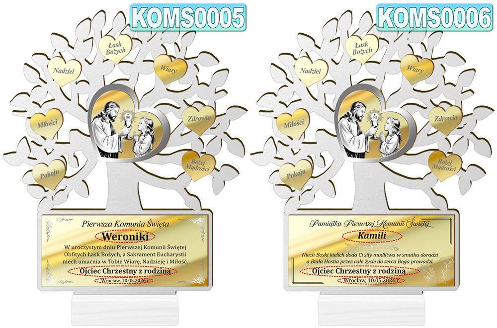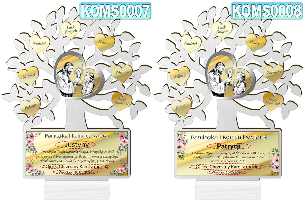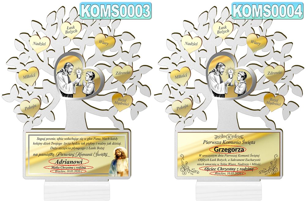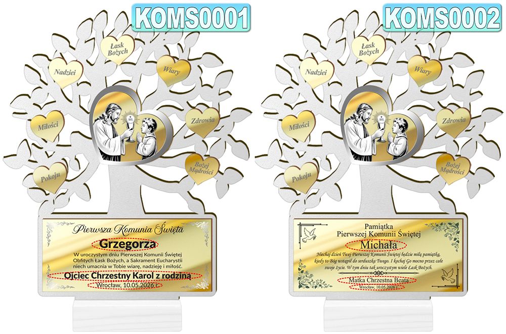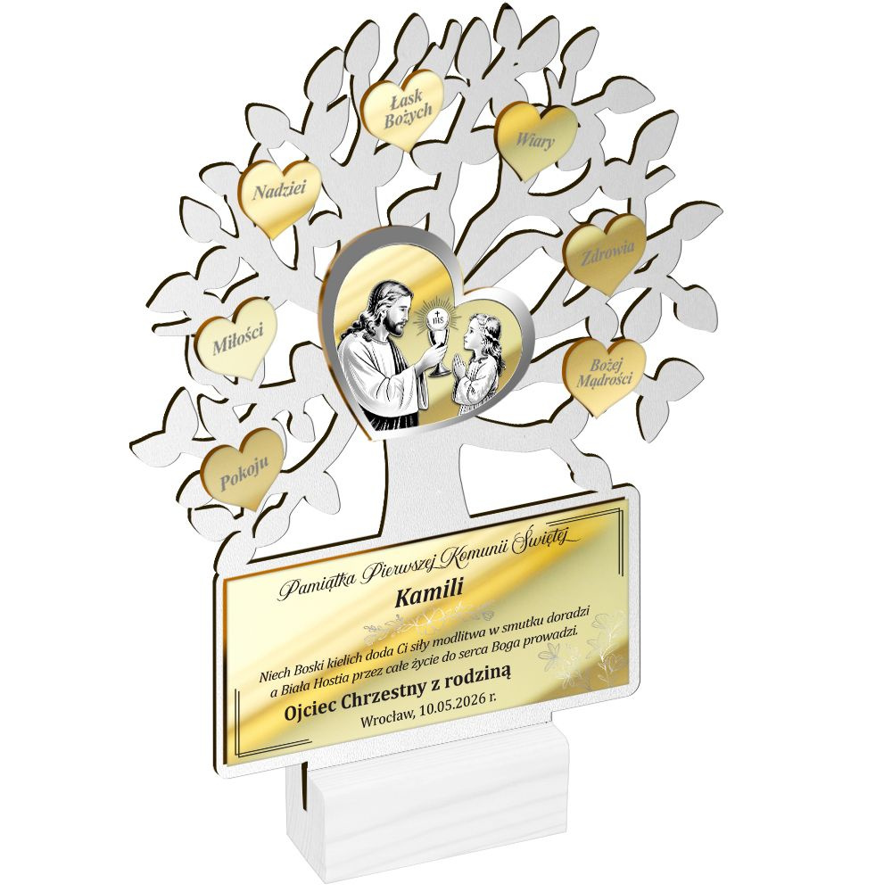 DREWNIANE DRZEWKO Pamiątka na Pierwszą Komunię Świętą z personalizacją
