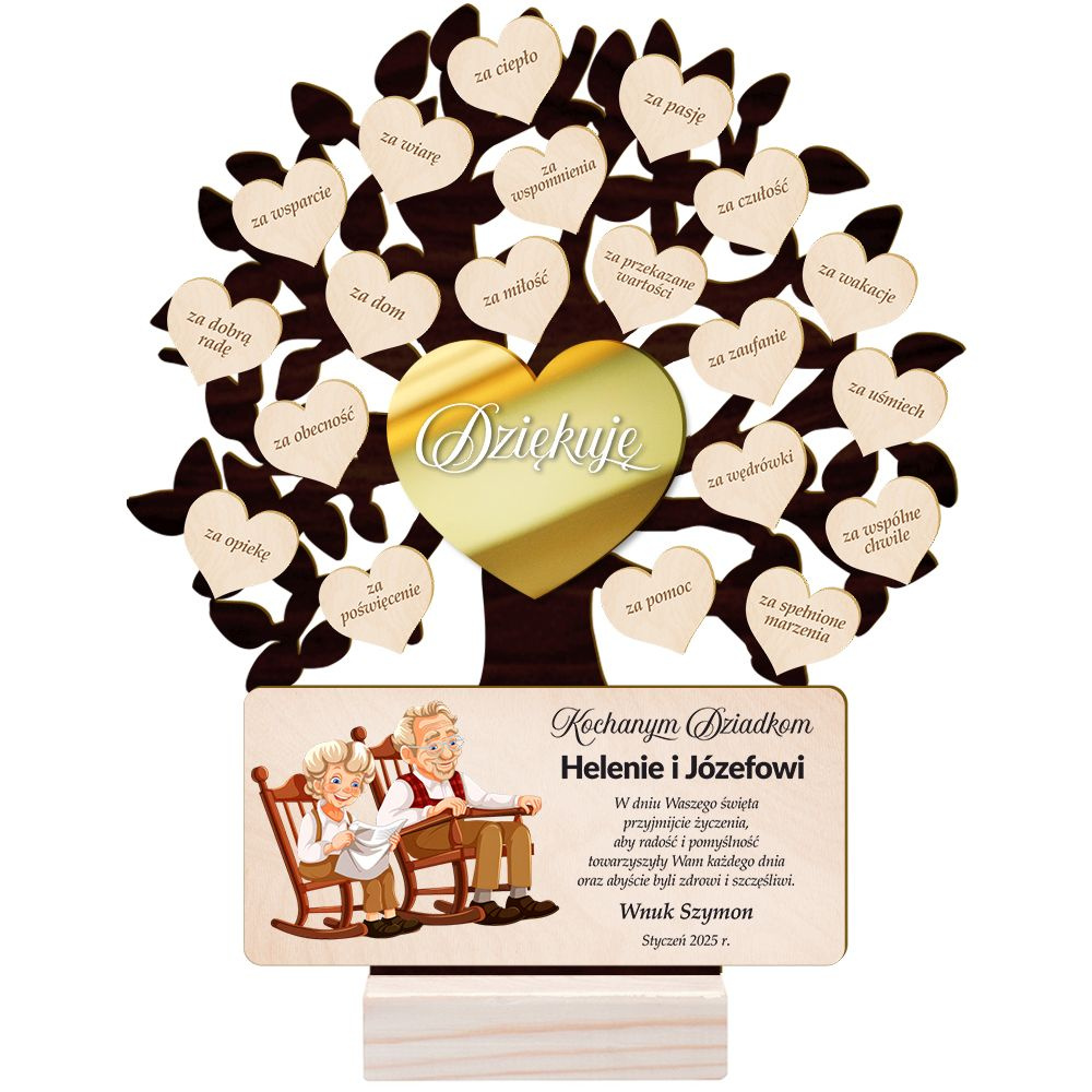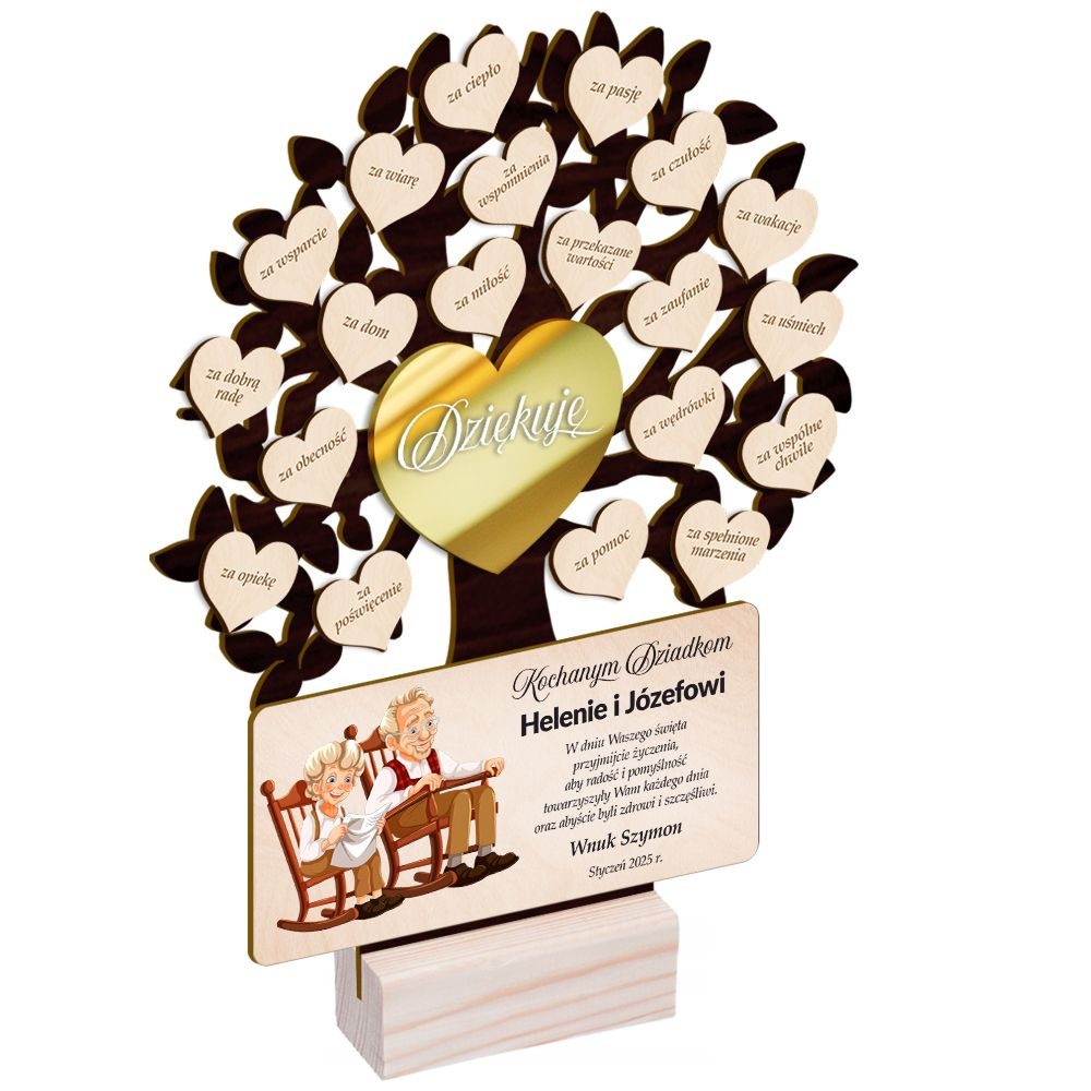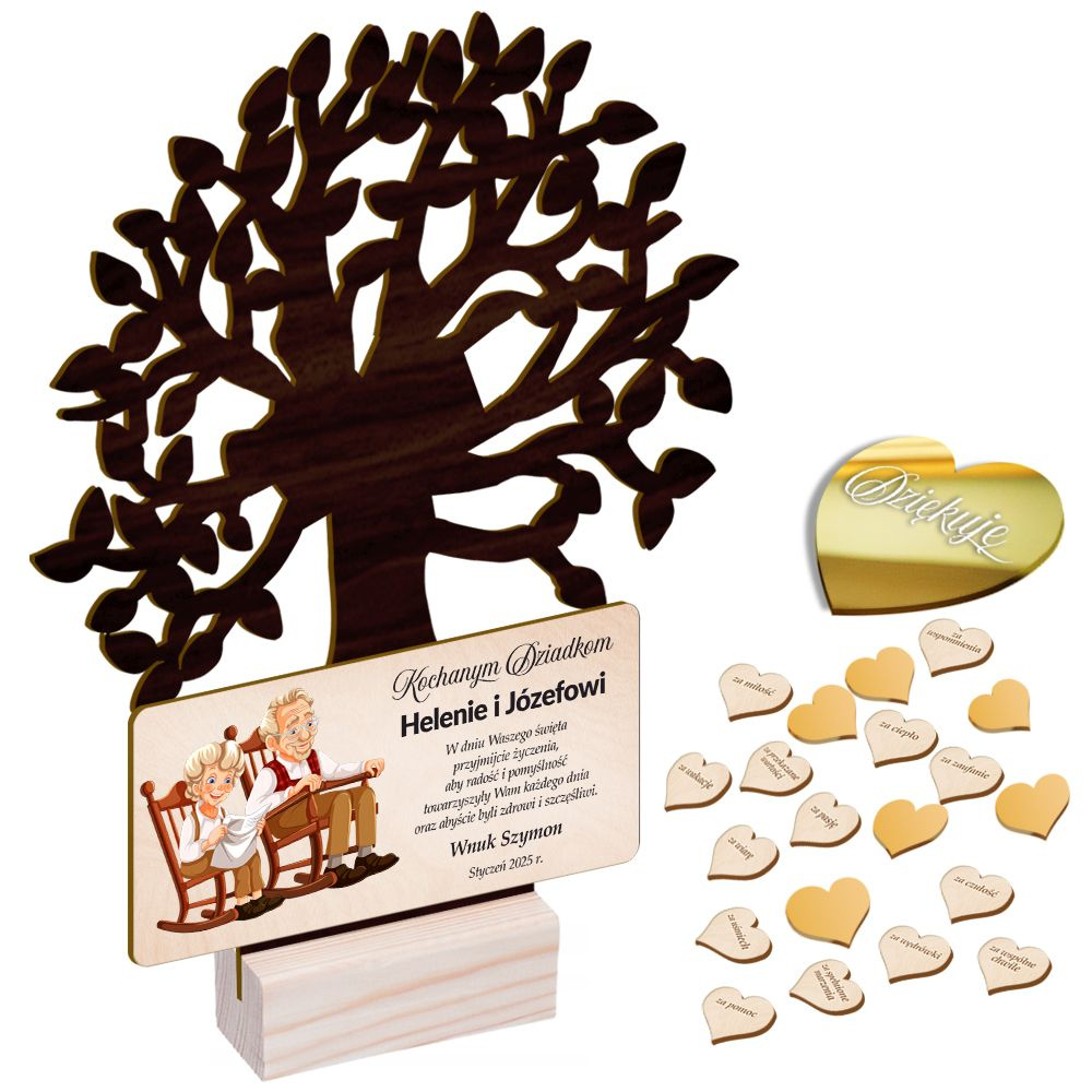 DREWNIANA STATUETKA DRZEWKO Prezent na Dzień Babci i Dziadka + własna dedykacja