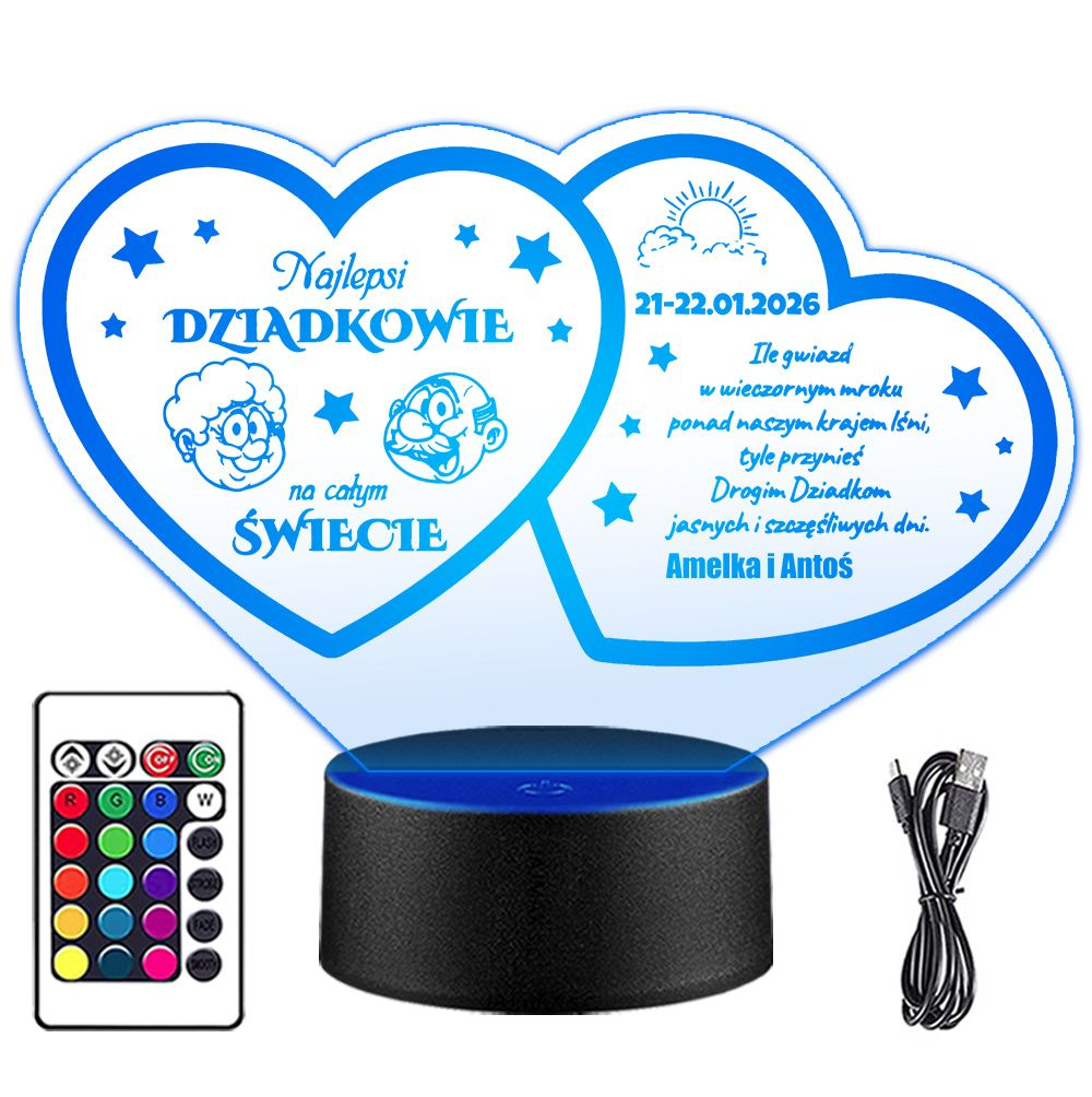 LAMPKA NOCNA 3D LED KOLORY + PILOT z własną dedykacją