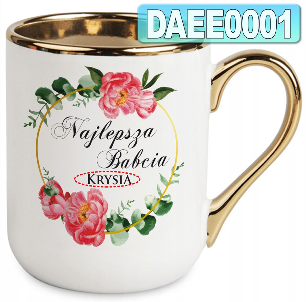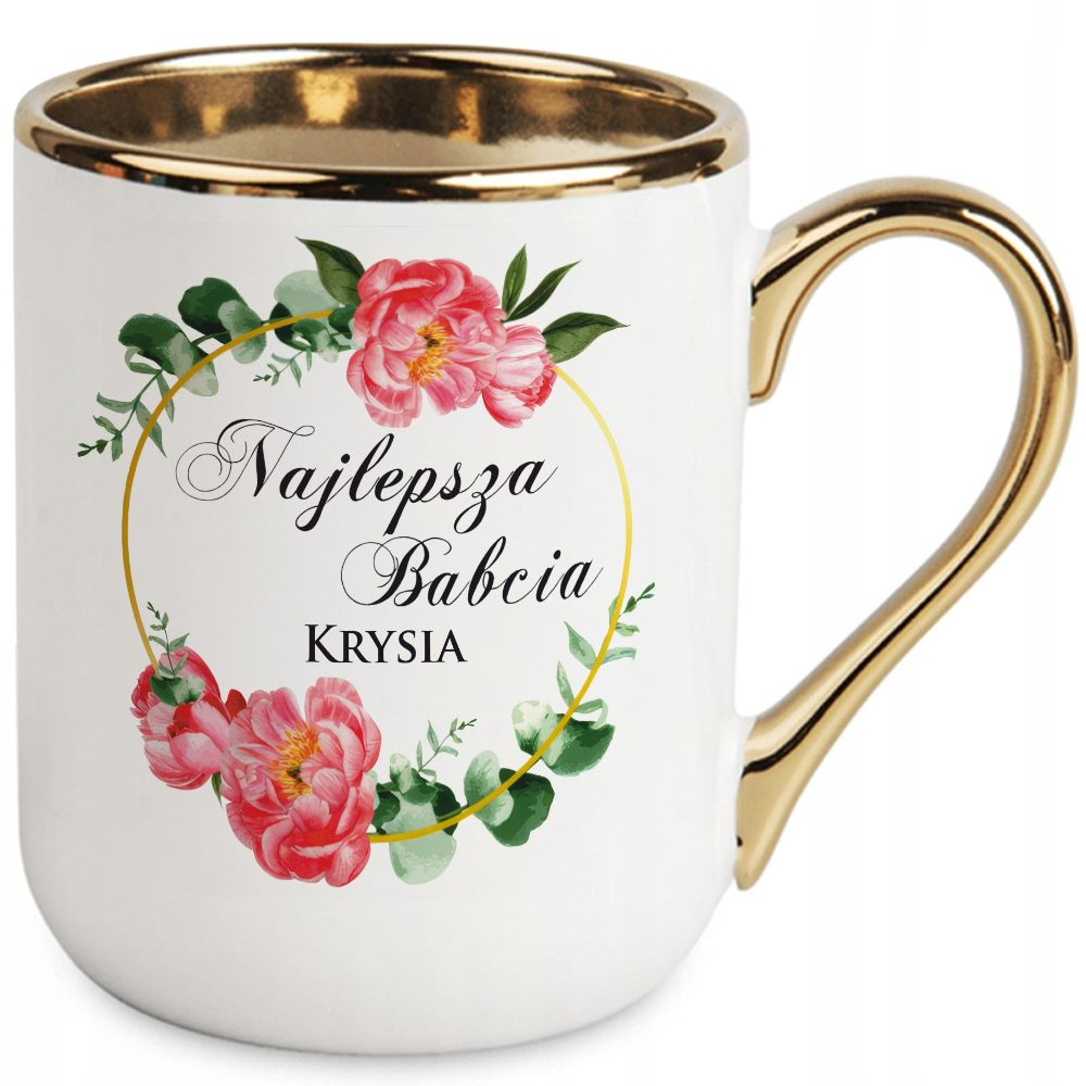 KUBEK ZE ZŁOTYMI ZDOBIENIAMI KUBEK 330ml Prezent na Dzień Babci