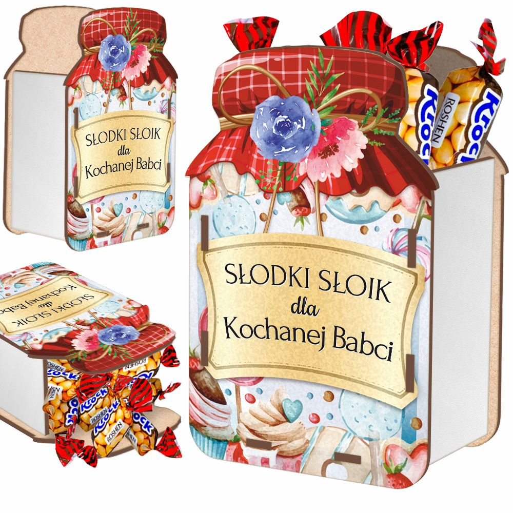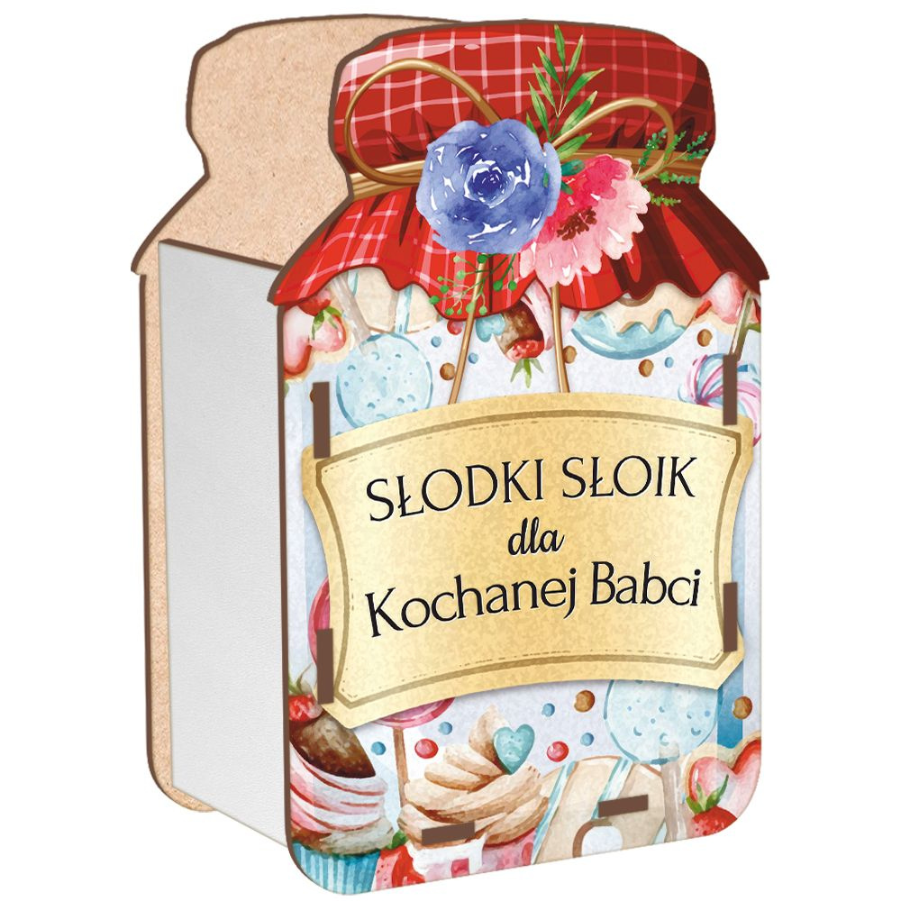 PREZENT NA DZIEŃ BABCI I DZIADKA DREWNIANY SŁOIK NA CUKIERKI PRZETWORY EKO