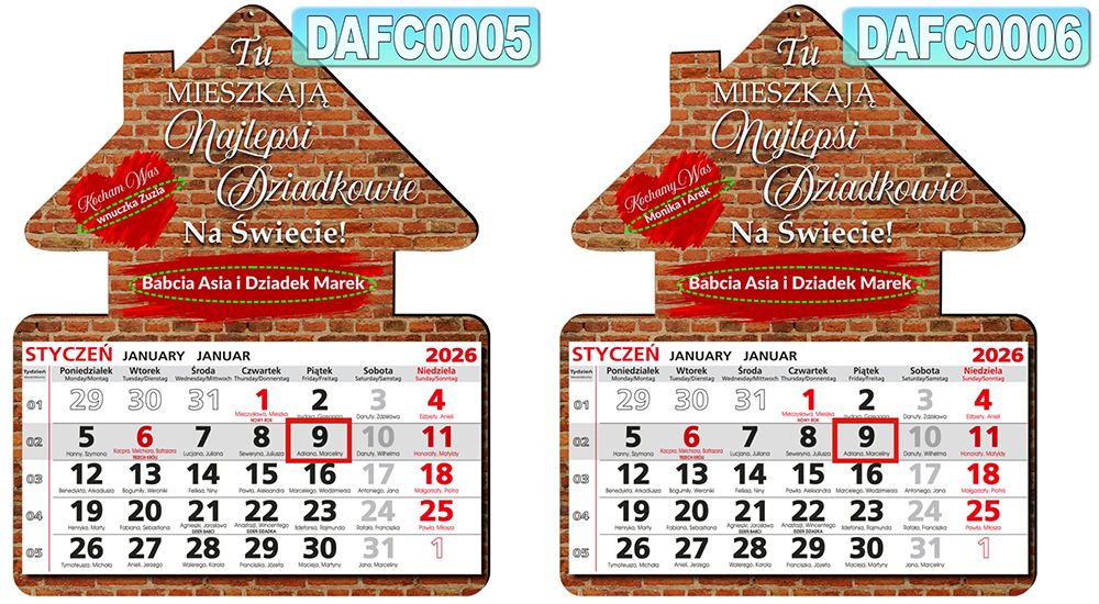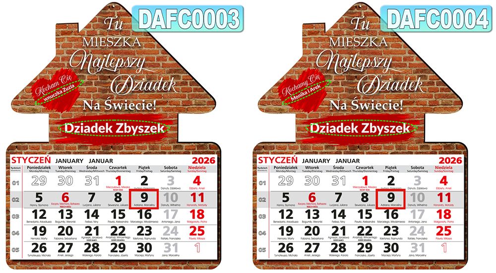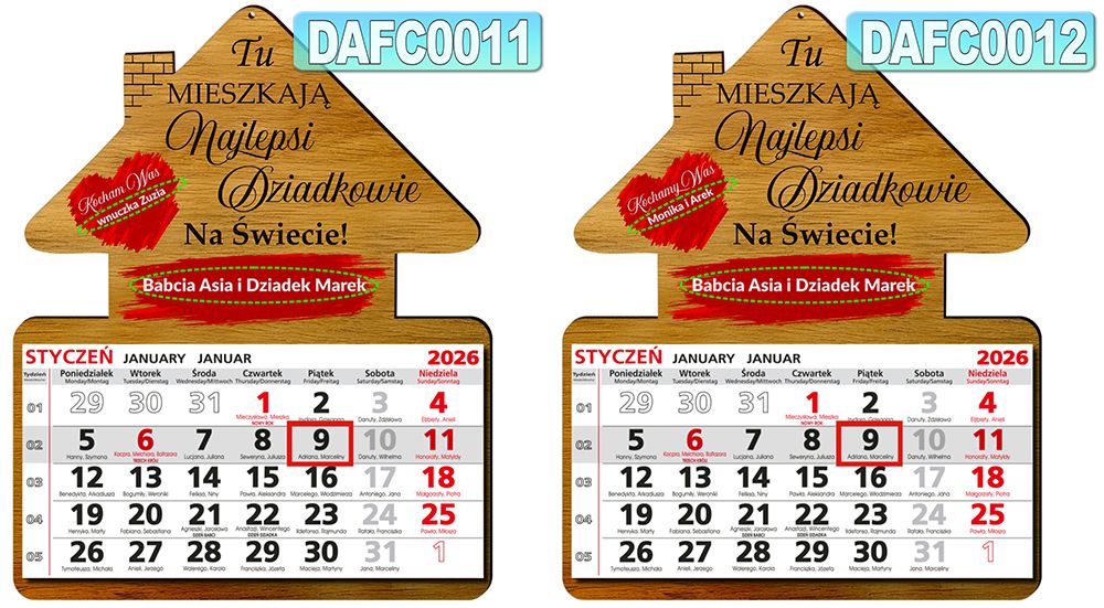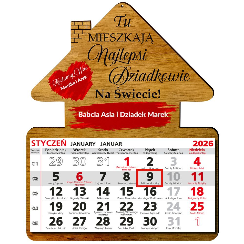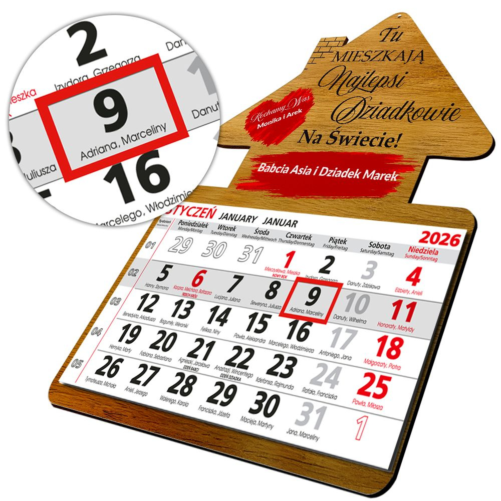 DREWNIANY KALENDARZ DOMEK na rok 2026 Prezent na Dzień Babci i Dziadka + własna dedykacja