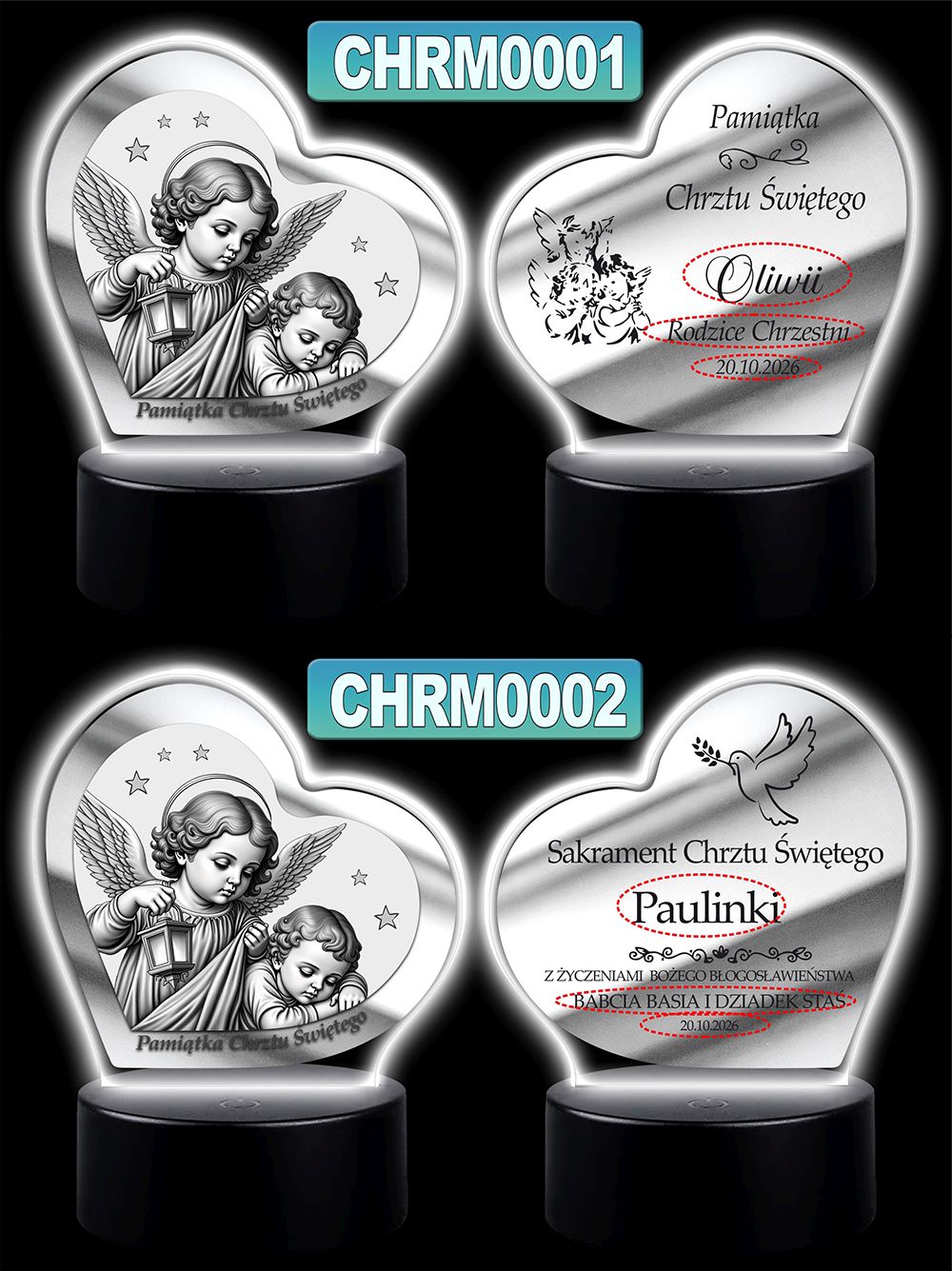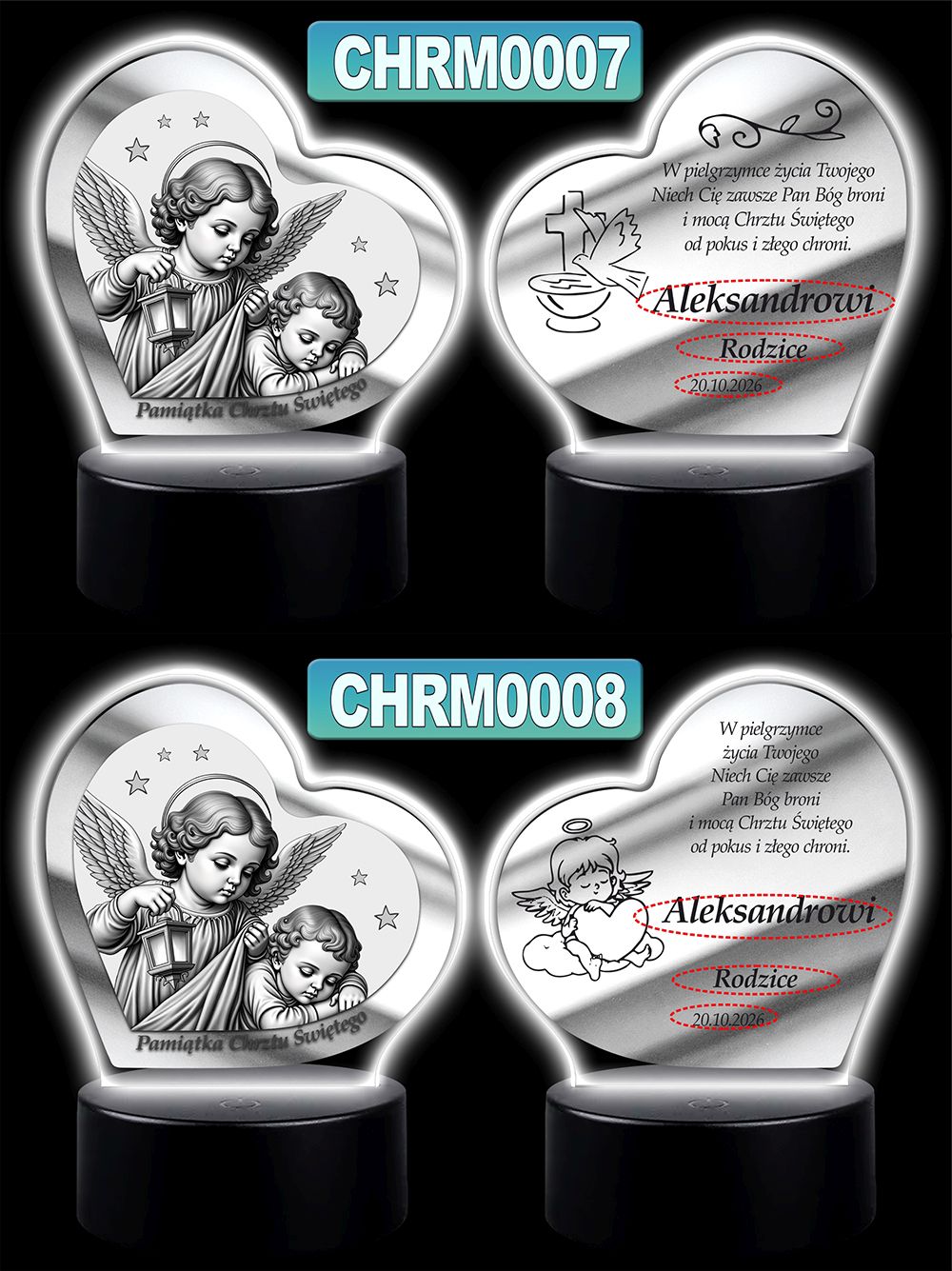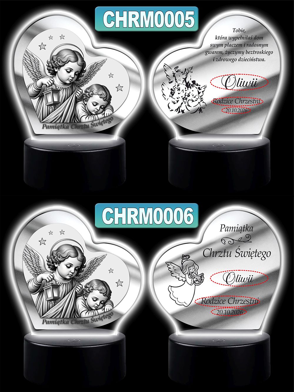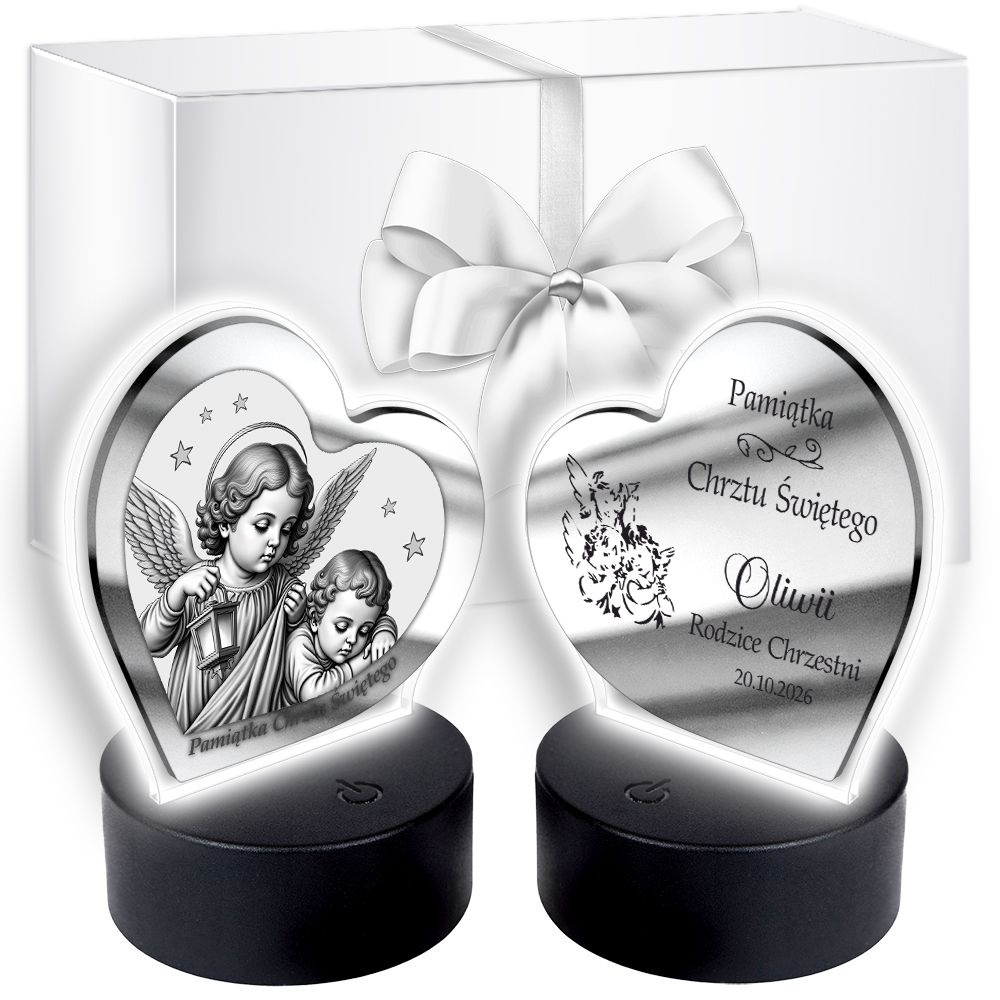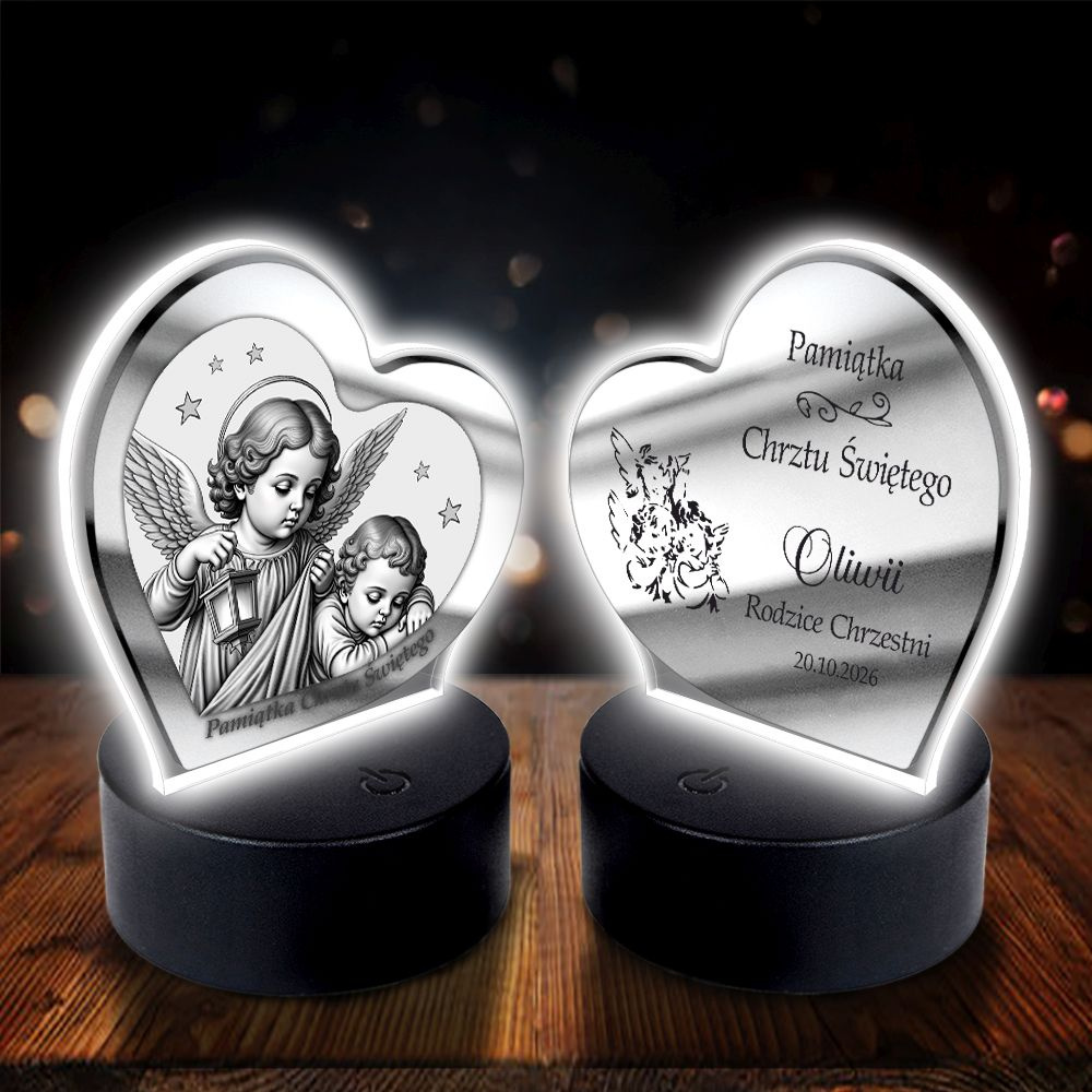 Wyjątkowa pamiątka sakramentu Chrztu Świętego – podświetlany obrazek w kształcie serca z wizerunkiem Anioła Stróża