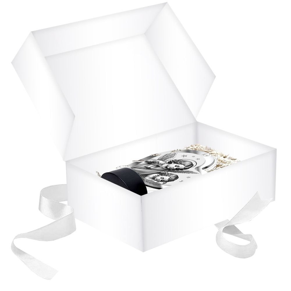 - Upominek jest zapakowany w eleganckie pudełko z ozdobnym wypełniaczem